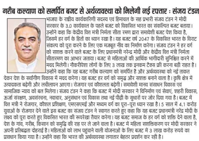 गरीब कल्याण को समर्पित बजट से अर्थव्यवस्था को मिलेगी नई रफ्तार : संजय टंडन +1 more storyRishu ChopraJul 24, 20242ShareThanks for reading News of Sanjay Tandon! Subscribe for free to receive new posts and support my work.SubscribePreviousNext