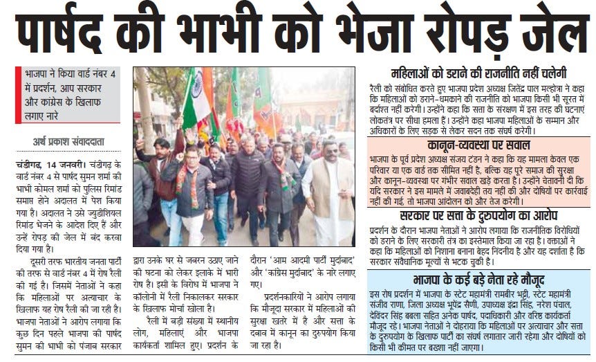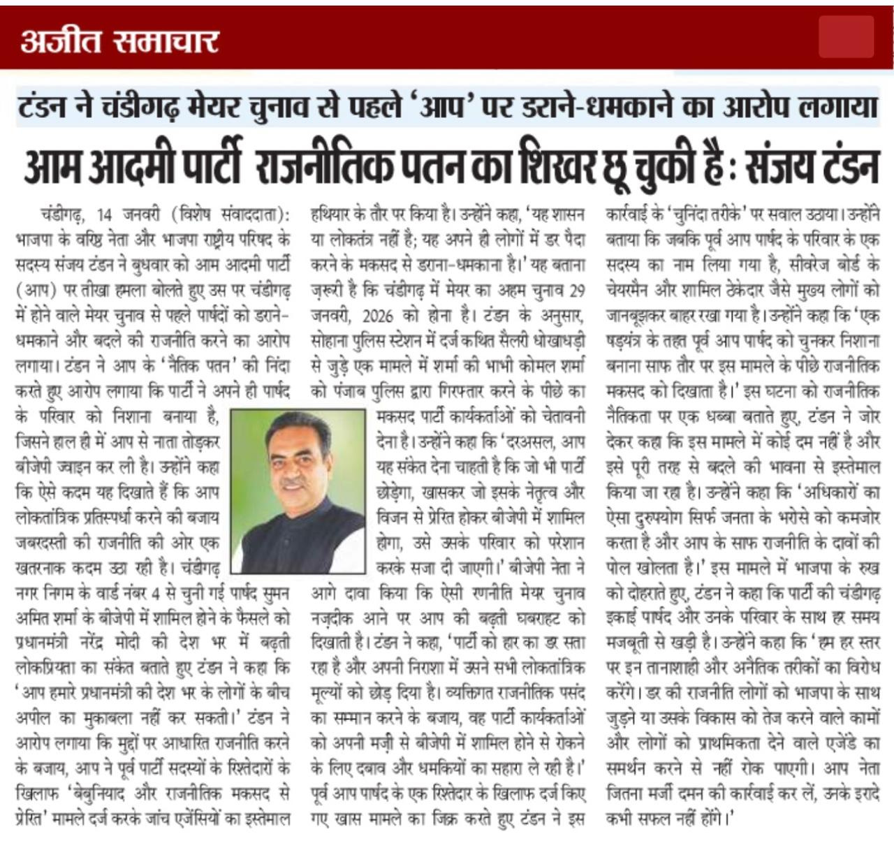 बीजेपी नेता संजय टंडन ने चंडीगढ़ मेयर चुनाव से पहले आम आदमी पार्टी पर डराने-धमकाने का आरोप लगाया https://share.google/4X7HCLqH6N7FK4Lx3