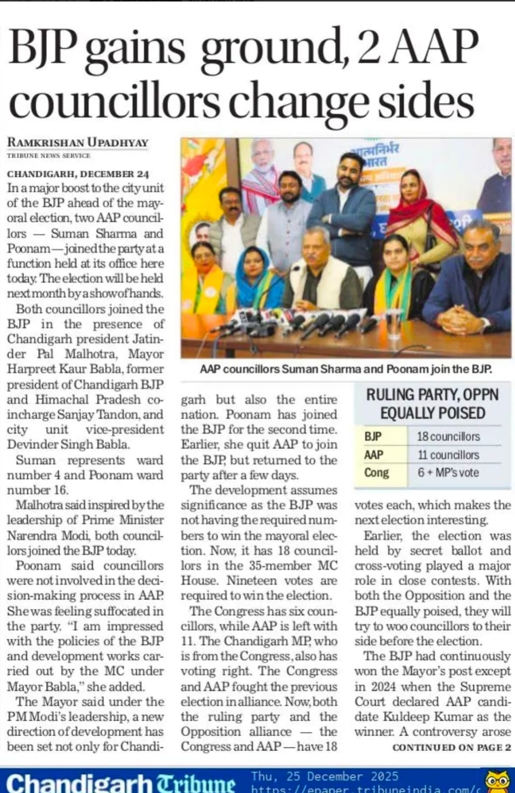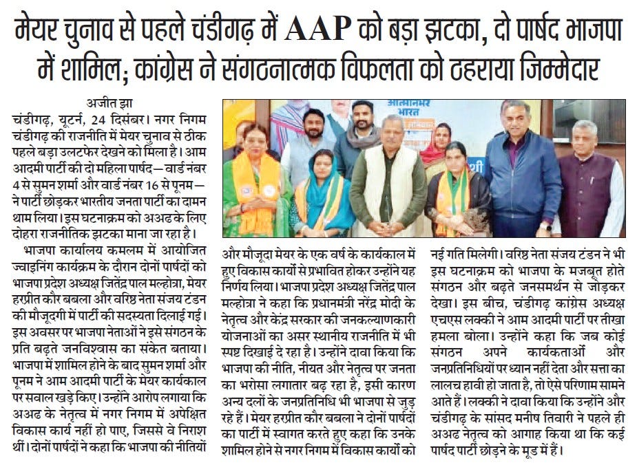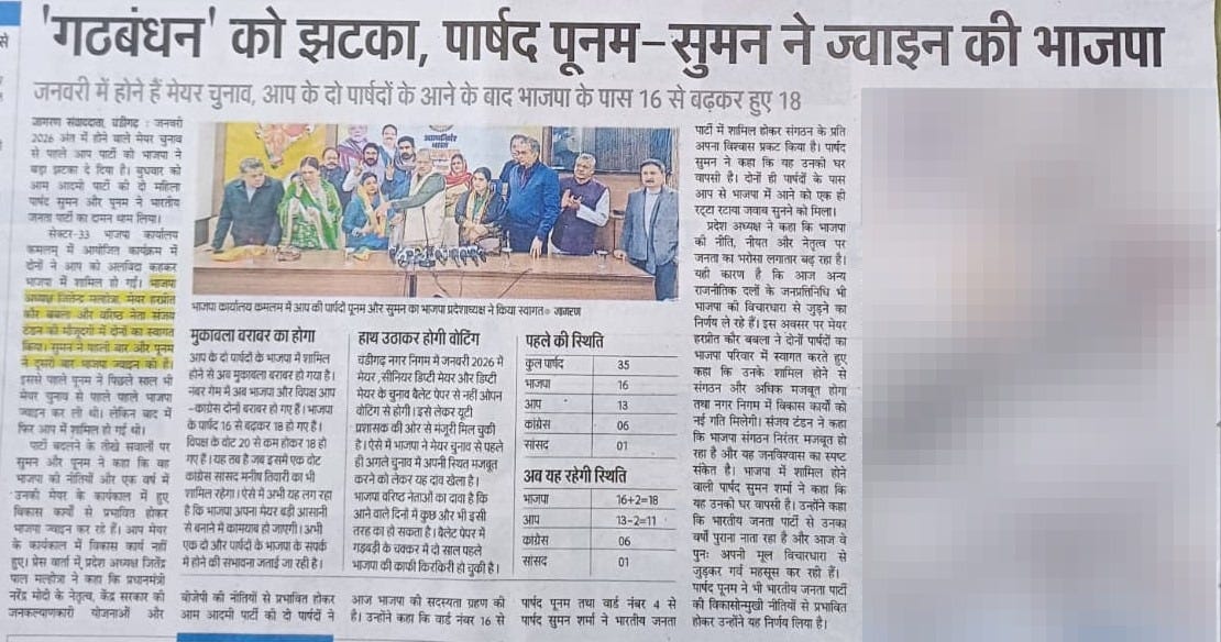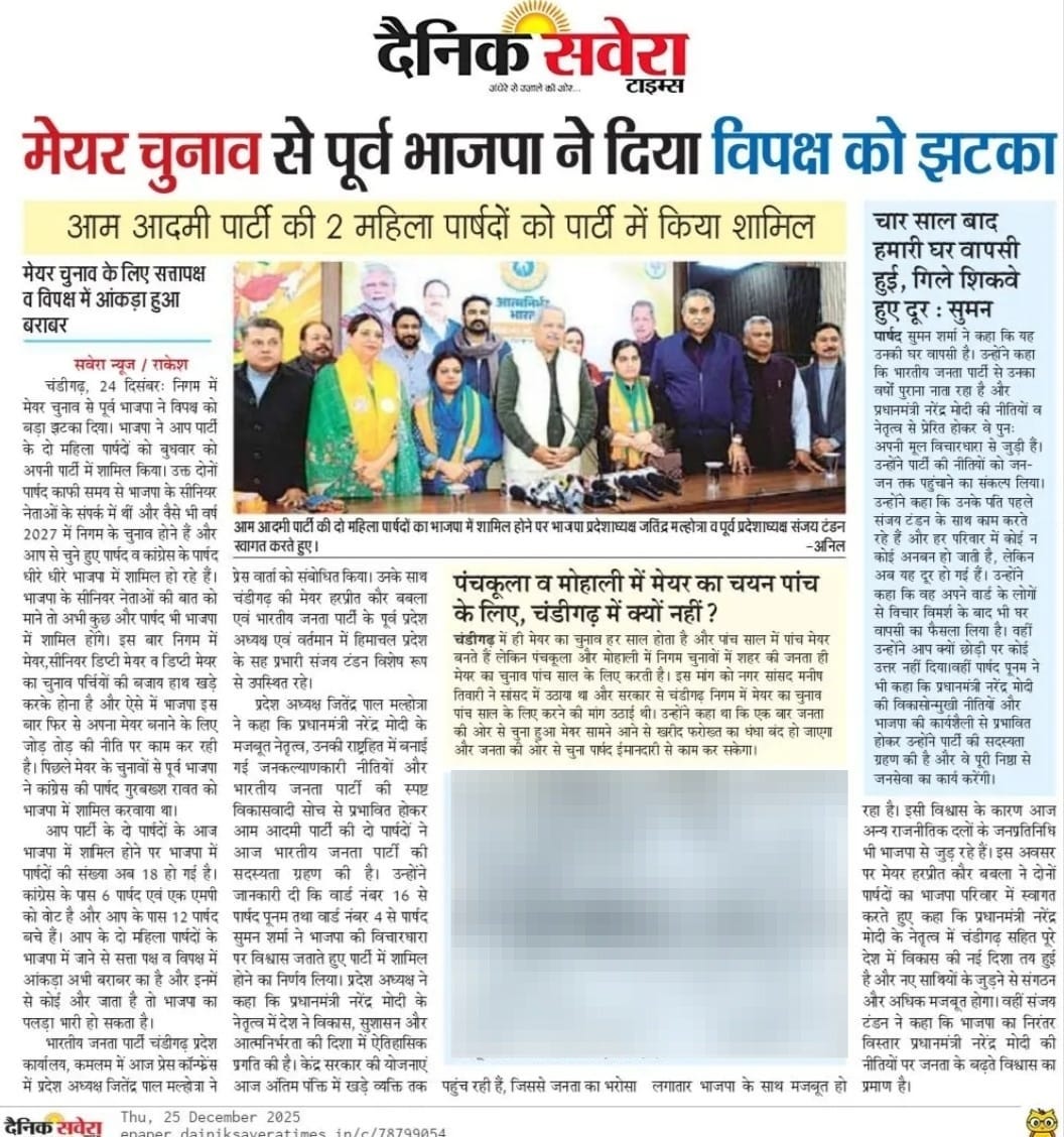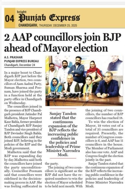 2 AAP councillors join BJP ahead of Mayor election +8 more storiesTeam Sanjay TandonDec 25, 2025SharePrevious