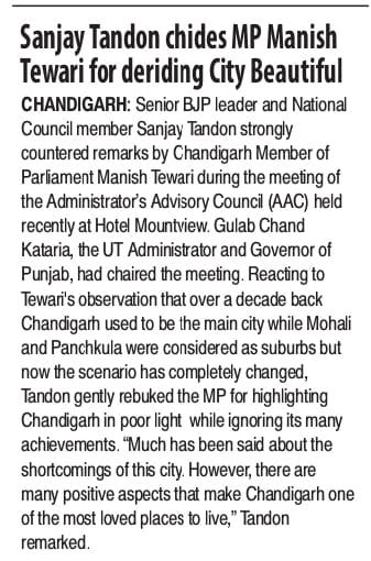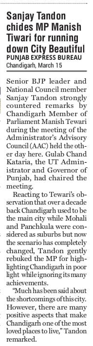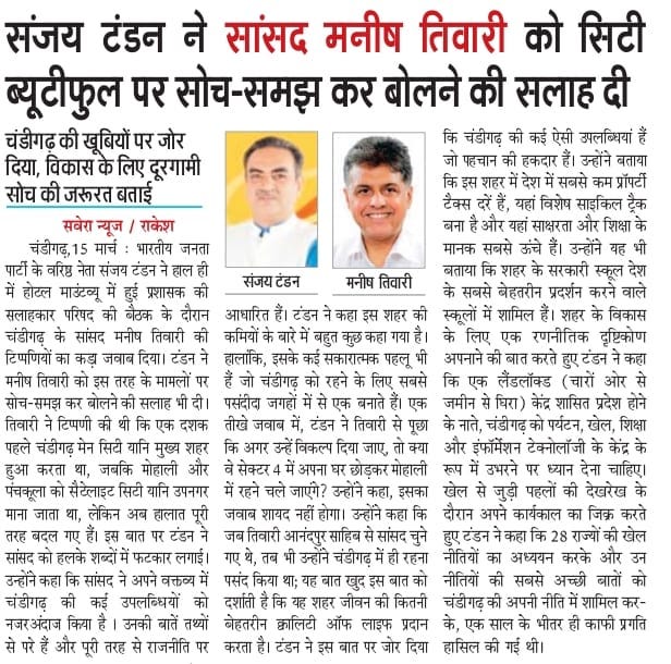 संजय टंडन ने सांसद मनीष तिवारी को सिटी ब्यूटीफुल पर सोच-समझ कर बोलने की सलाह दी +2 more storiesTeam Sanjay TandonMar 16, 2026SharePrevious