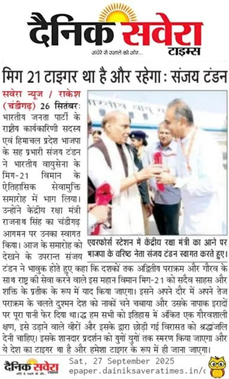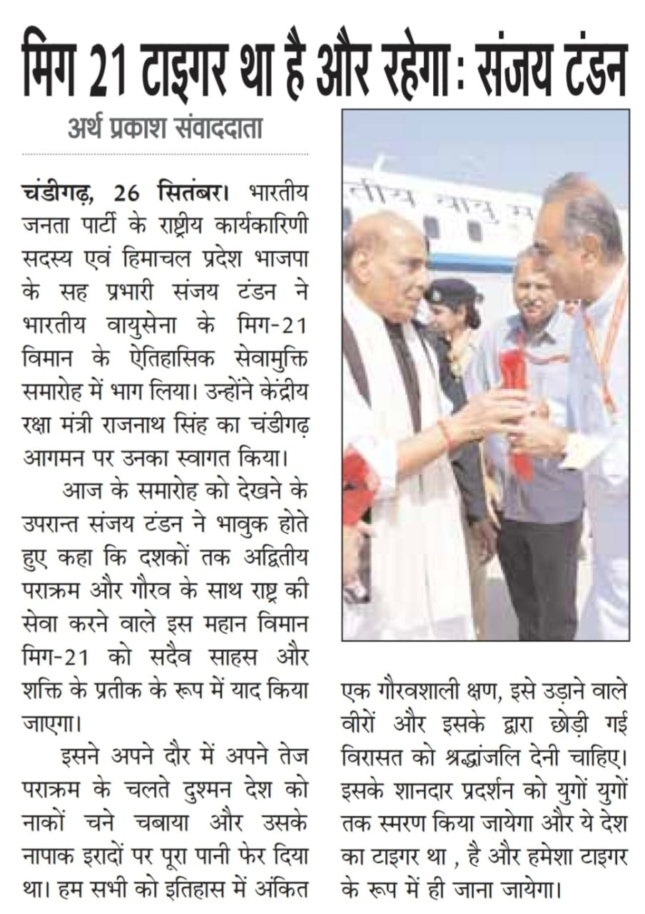 मिग 21 टाइगर था, है और रहेगा: संजय टंडन +4 more stories Team Sanjay TandonSep 27, 2025SharePreviousNext