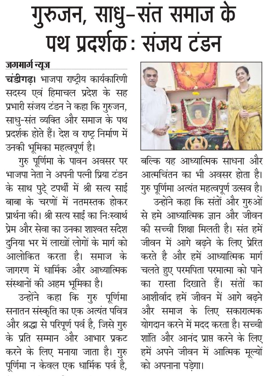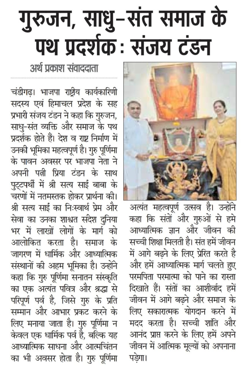 गुरुजन, साधु-संत समाज के पथ प्रदर्शक : संजय टंडन +3 more storiesTeam Sanjay TandonJul 11, 2025Shareगुरुजन, साधु-संत समाज के पथ प्रदर्शक : संजय टंडन गुरुजन, साधु-संत समाज के पथ प्रदर्शक : संजय टंडन ‘गुरुजन, साधु-संत समाज के पथ प्रदर्शक’PreviousNext