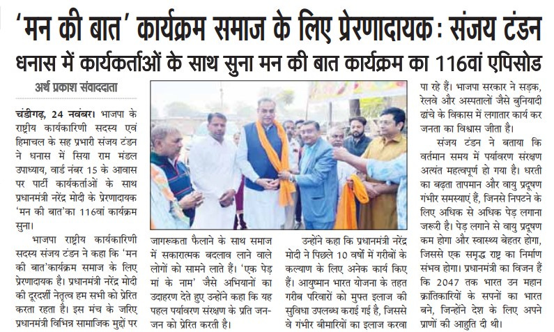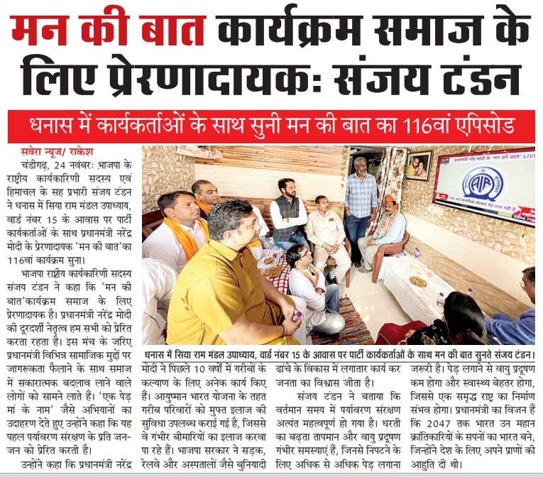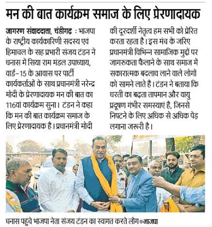 मन की बात कार्यक्रम समाज के लिए प्रेरणादायक: संजय टंडन +4 more storiesTeam Sanjay TandonNov 25, 2024Shareआचार्य कैलाश चंद्र देव बृहस्पति द्वारा रचित नाटक कला भारती का मंचन'मन की बात' कार्यक्रम समाज के लिए प्रेरणादायक : संजय टंडनThanks for reading News of Sanjay Tandon! Subscribe for free to receive new posts and support my work.Subscribe'मन की बात' कार्यक्रम समाज के लिए प्रेरणादायक'मन की बात' कार्यक्रम समाज के लिए प्रेरणादायक Thanks for reading News of Sanjay Tandon! Subscribe for free to receive new posts and support my work.SubscribePreviousNext