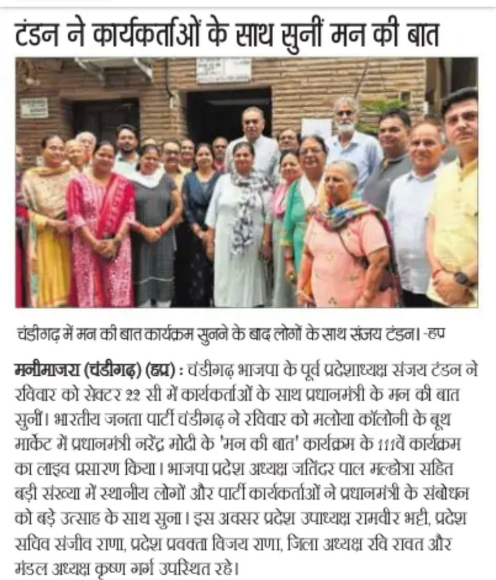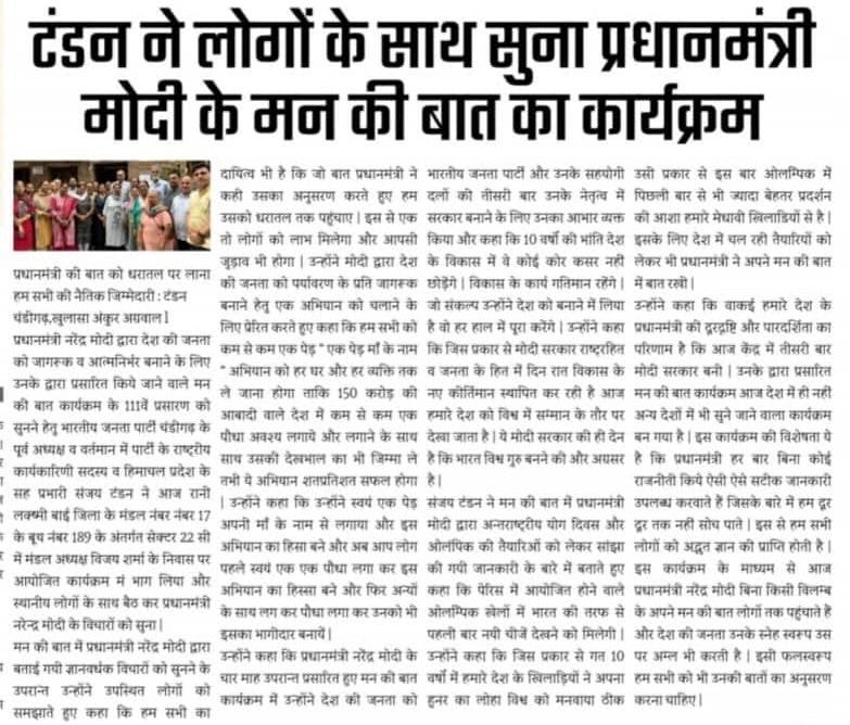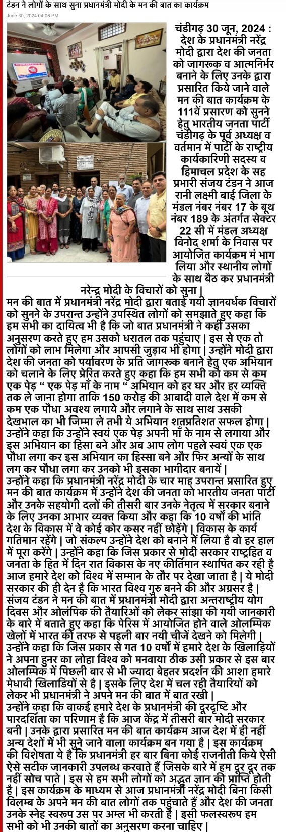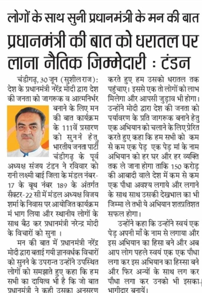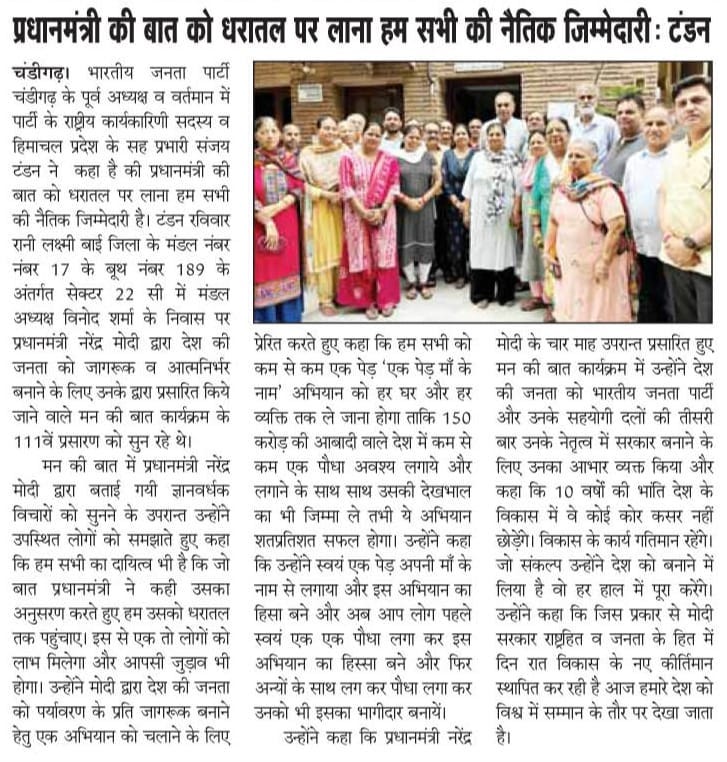 टंडन ने लोगों के साथ सुना प्रधानमंत्री मोदी के मन की बात का कार्यक्रम