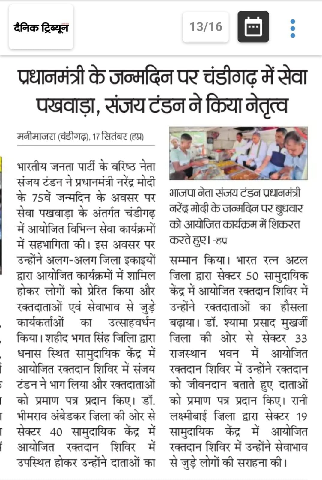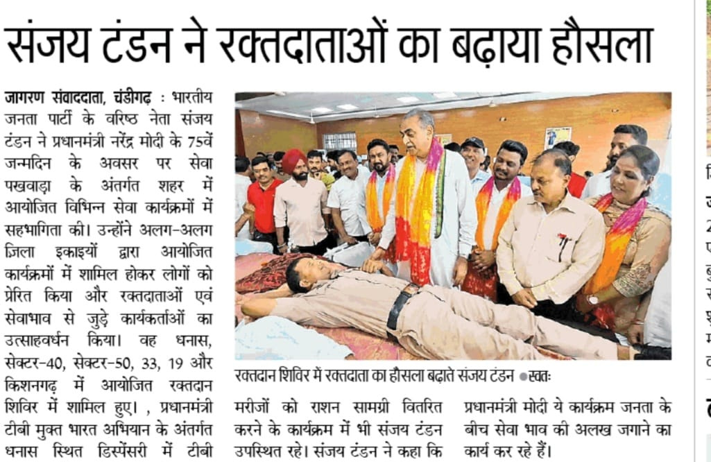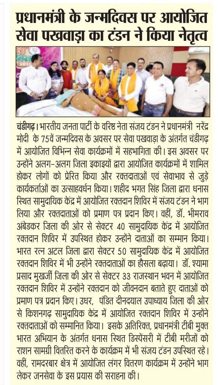 प्रधानमंत्री के जन्मदिन पर चंडीगढ में सेवा पखवाड़ा, संजय टंडन ने किया नेतृत्व