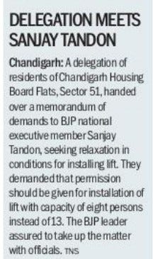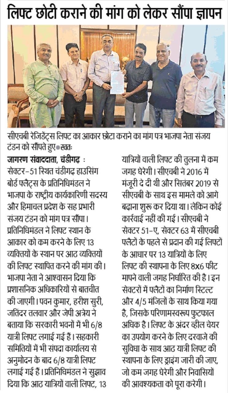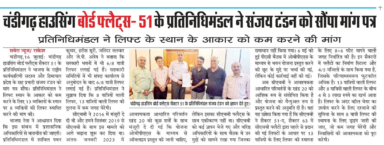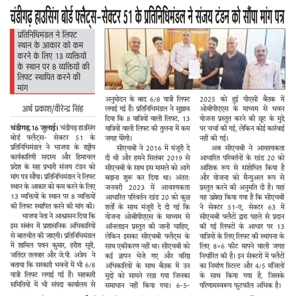 चंडीगढ़ हाउसिंग बोर्ड फ्लैट्स - सैक्टर 51 के प्रतिनिधिमंडल ने संजय टंडन को सौंपा मांग पत्र