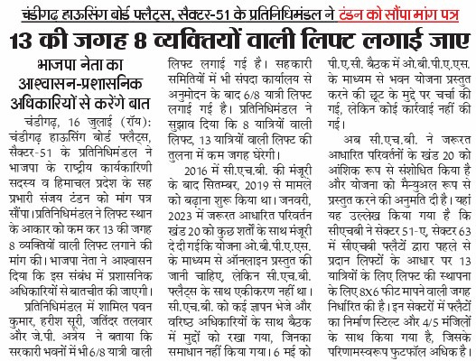 लिफ्ट छोटी कराने की मांग को लेकर सौंपा ज्ञापन