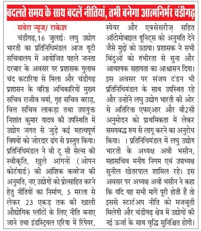बदलते समय के साथ बदलें नीतियां, तभी बनेगा आत्मनिर्भर चंडीगढ़