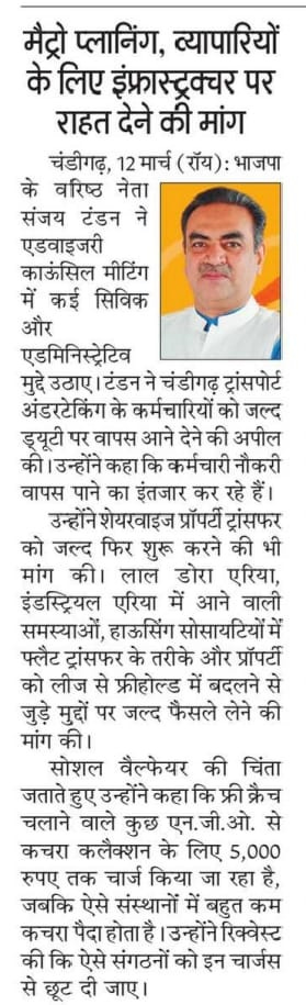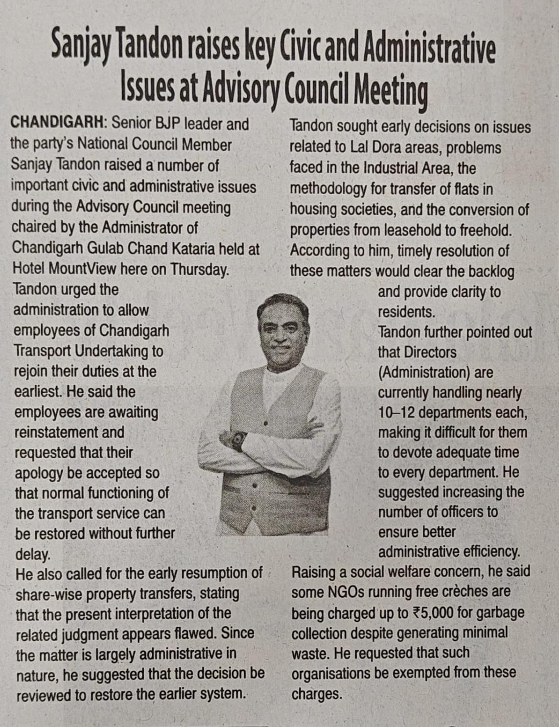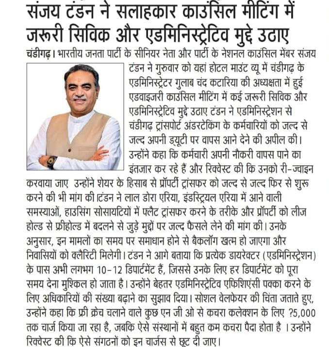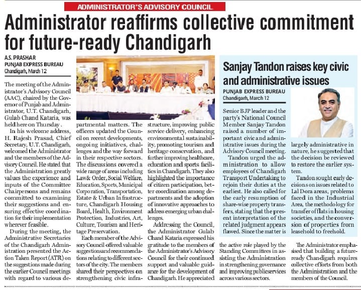 संजय टंडन ने सलाहकार काउंसिल मीटिंग में जरूरी सिविक और एडमिनिस्ट्रेटिव मुद्दे उठाए +6 more storiesTeam Sanjay TandonMar 13, 2026SharePrevious