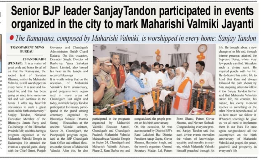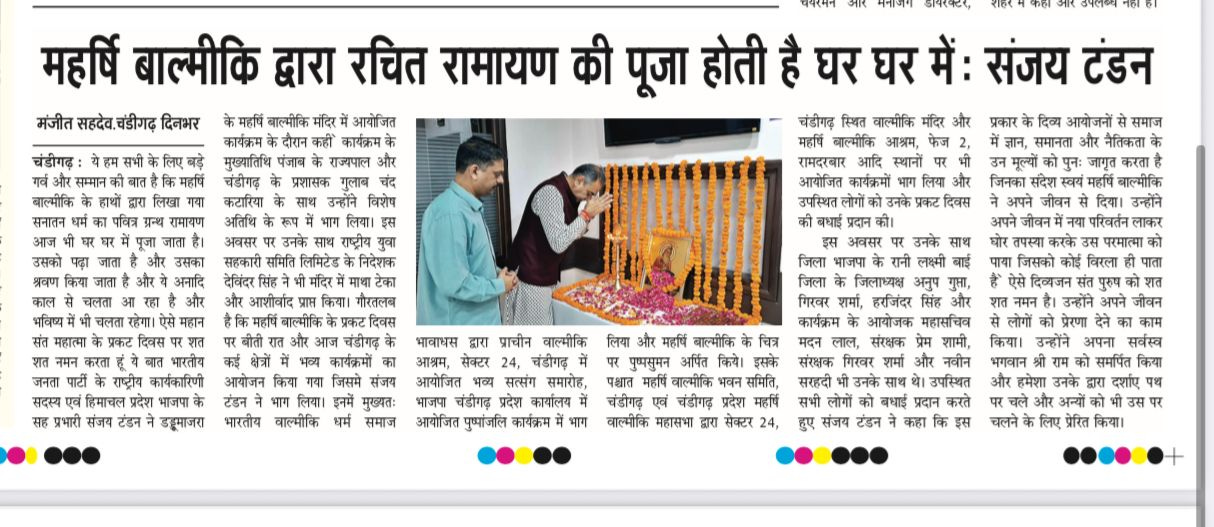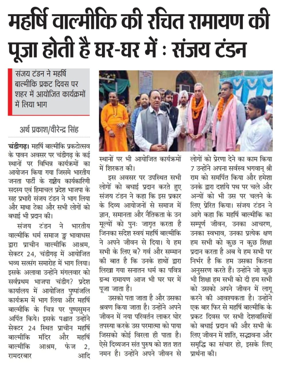 Senior BJP leader Sanjay Tandon participated in events organized in the city to mark Maharishi Valmiki Jayanti