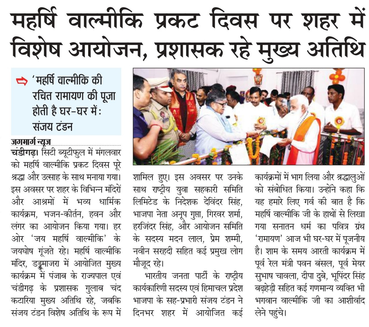 महर्षि वाल्मीकि ने विश्व के कल्याण के लिए श्री रामायण ग्रंथ की रचना की : संजय टंडन