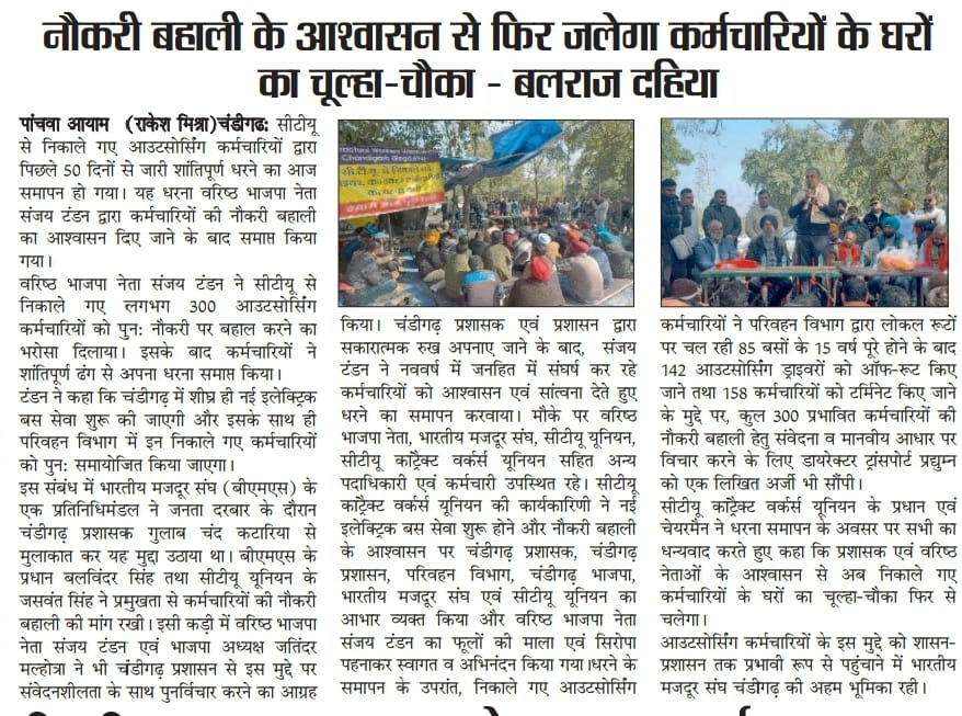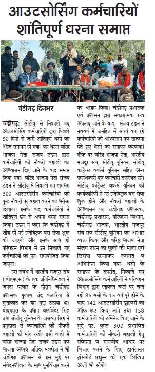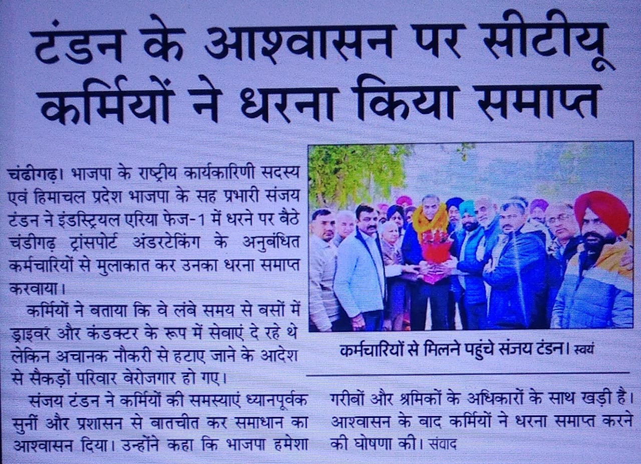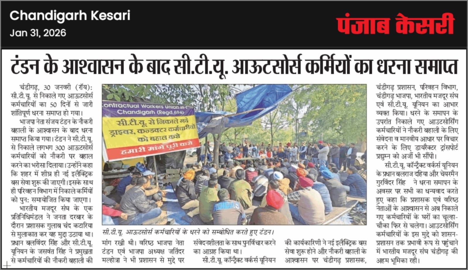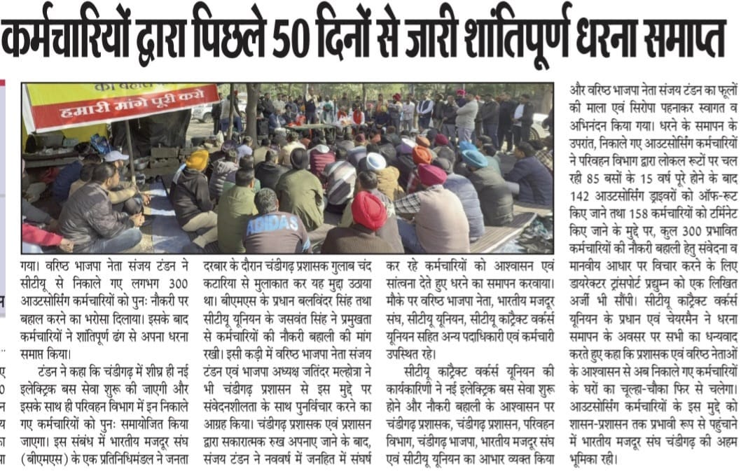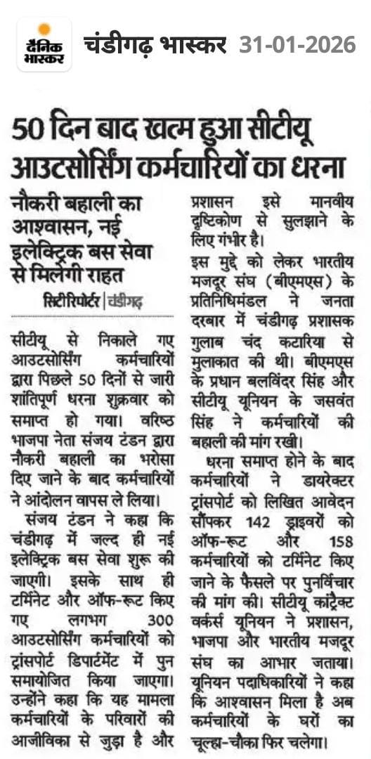 टंडन के आश्वासन के बाद सी.टी.यू. आऊटसोर्स कर्मियों का धरना समाप्त +7 more storiesTeam Sanjay TandonJan 31, 20262SharePreviousNext