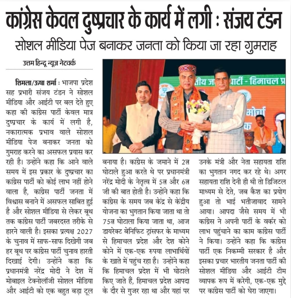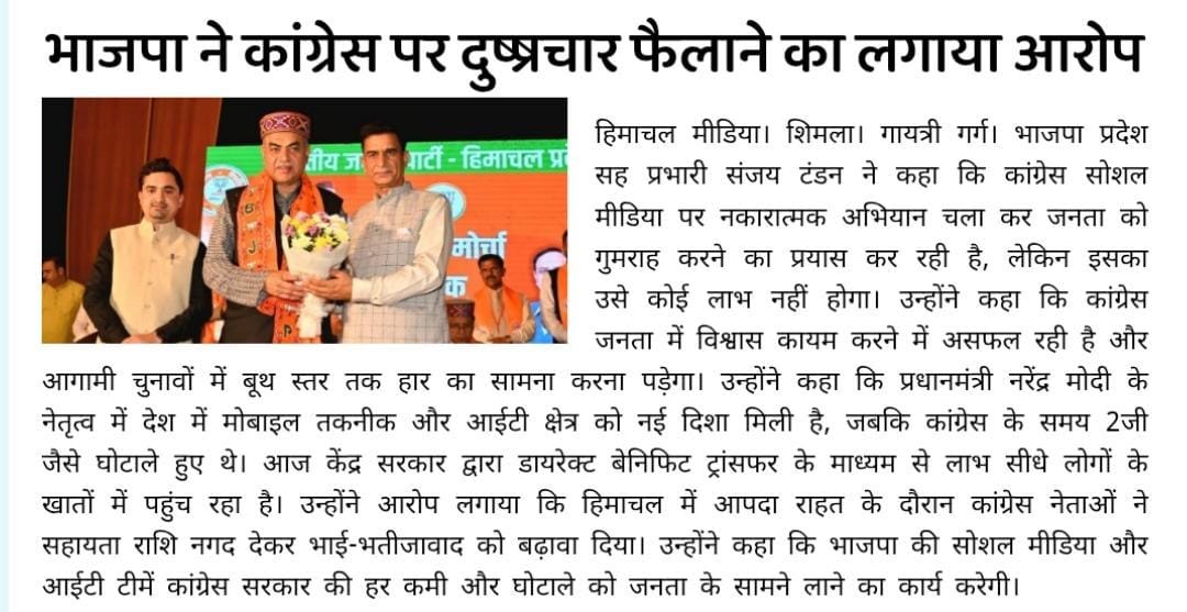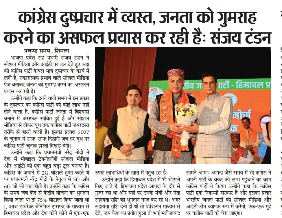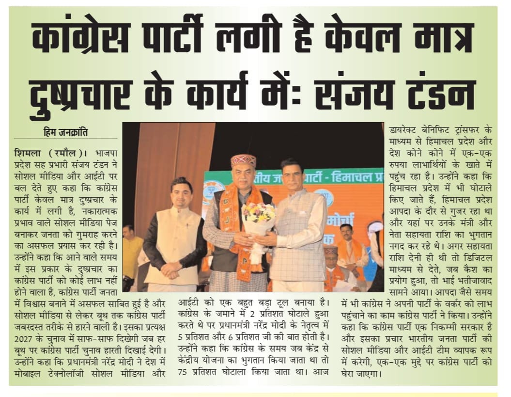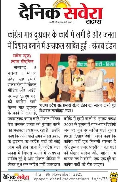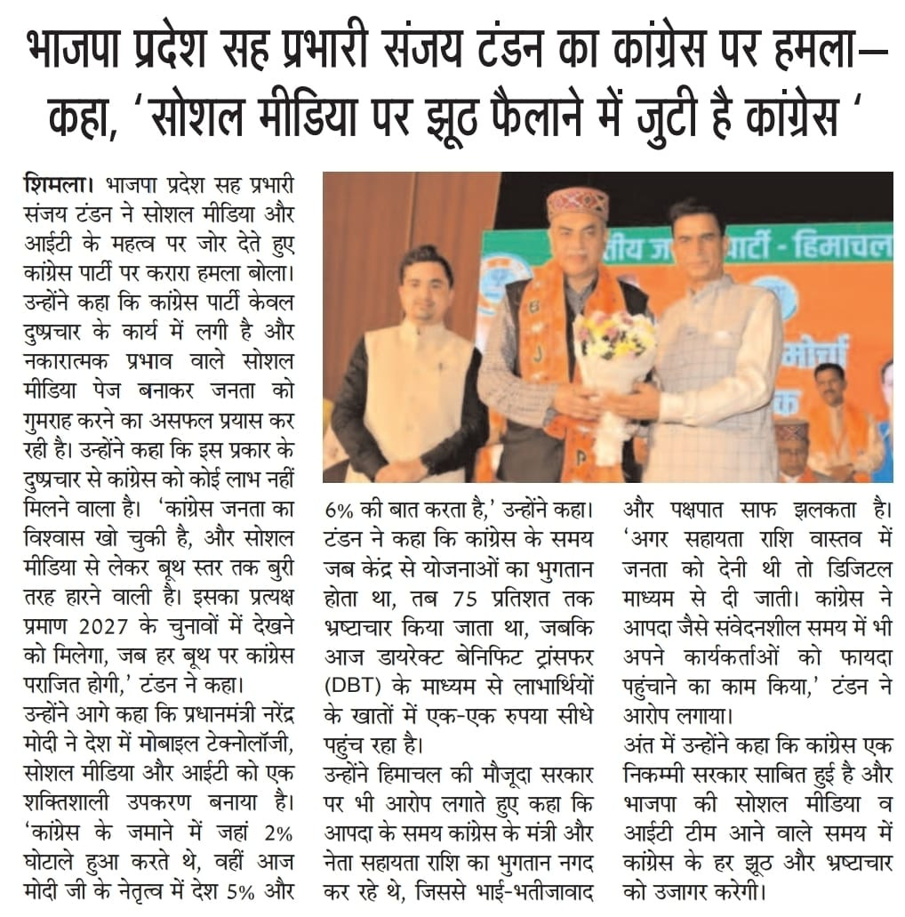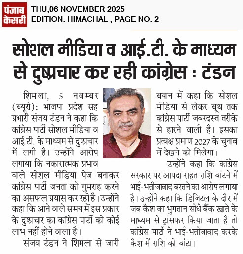भाजपा प्रदेश सह प्रभारी संजय टंडन का कांग्रेस पर हमला- कहा, ‘सोशल मीडिया पर झूठ फैलाने में जुटी है कांग्रेस' +7 more storiesTeam Sanjay TandonNov 06, 2025SharePrevious