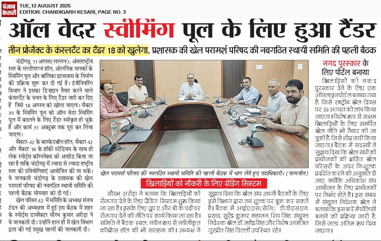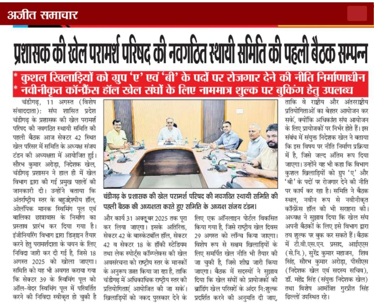 प्रशासक की खेल परामर्श परिषद की नवगठित स्थायी समिति की पहली बैठक सम्पन्न