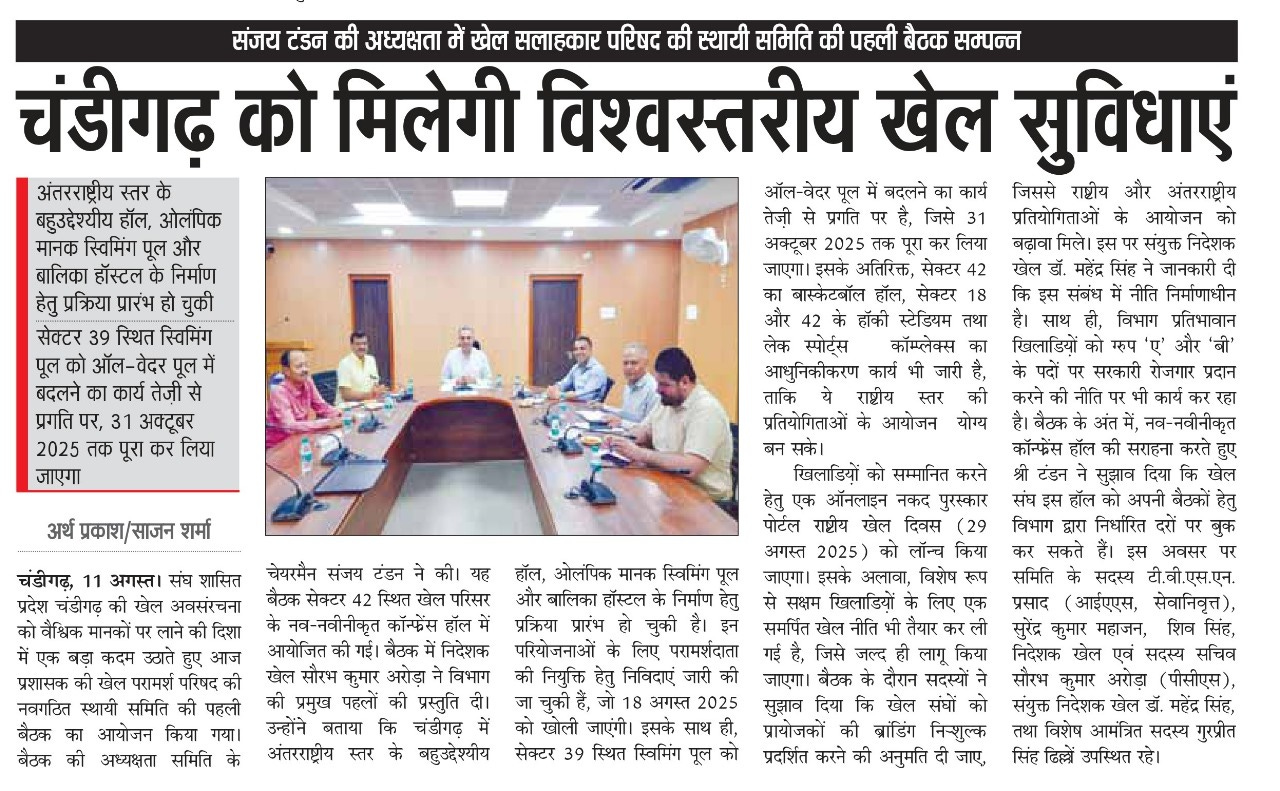 चंडीगढ़ को मिलेगी विश्वस्तरीय खेल सुविधाएं