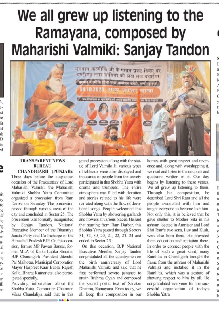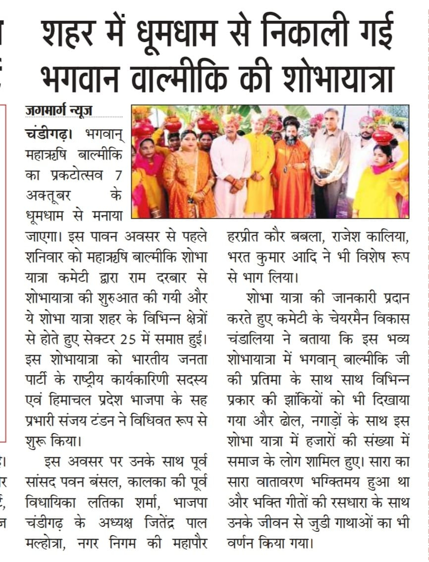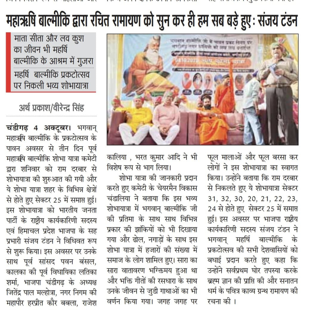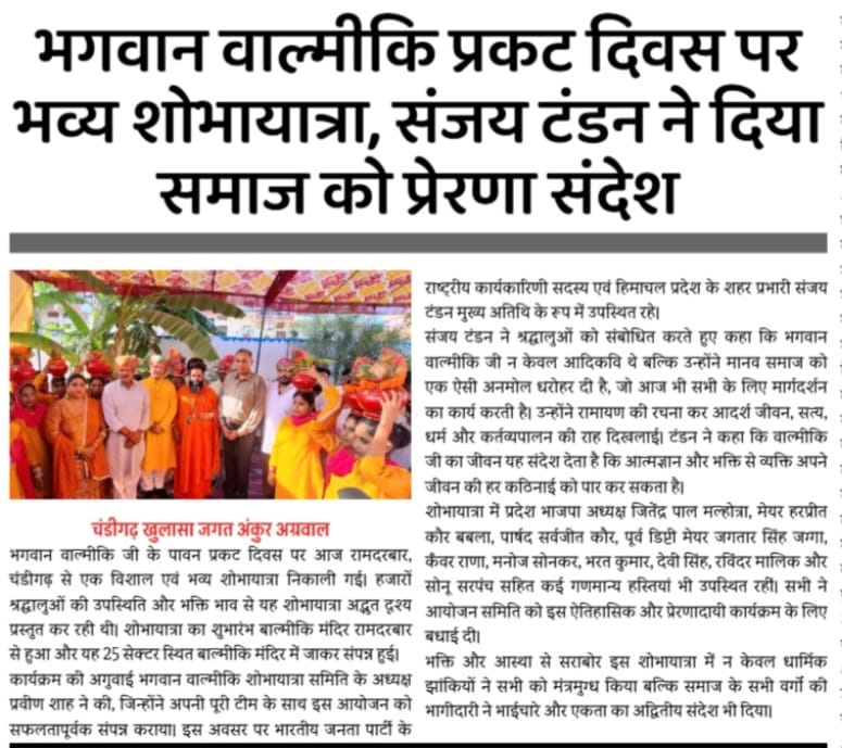 भगवान वाल्मीकि प्रकट दिवस पर भव्य शोभायात्रा, संजय टंडन ने दिया समाज को प्रेरणा संदेश +8 more stories