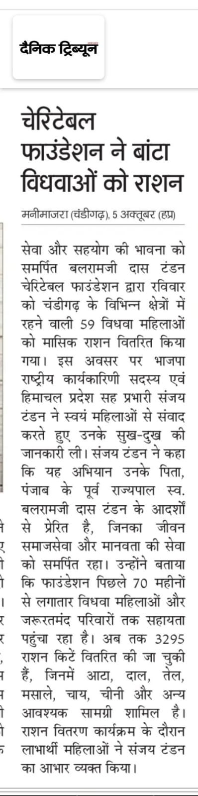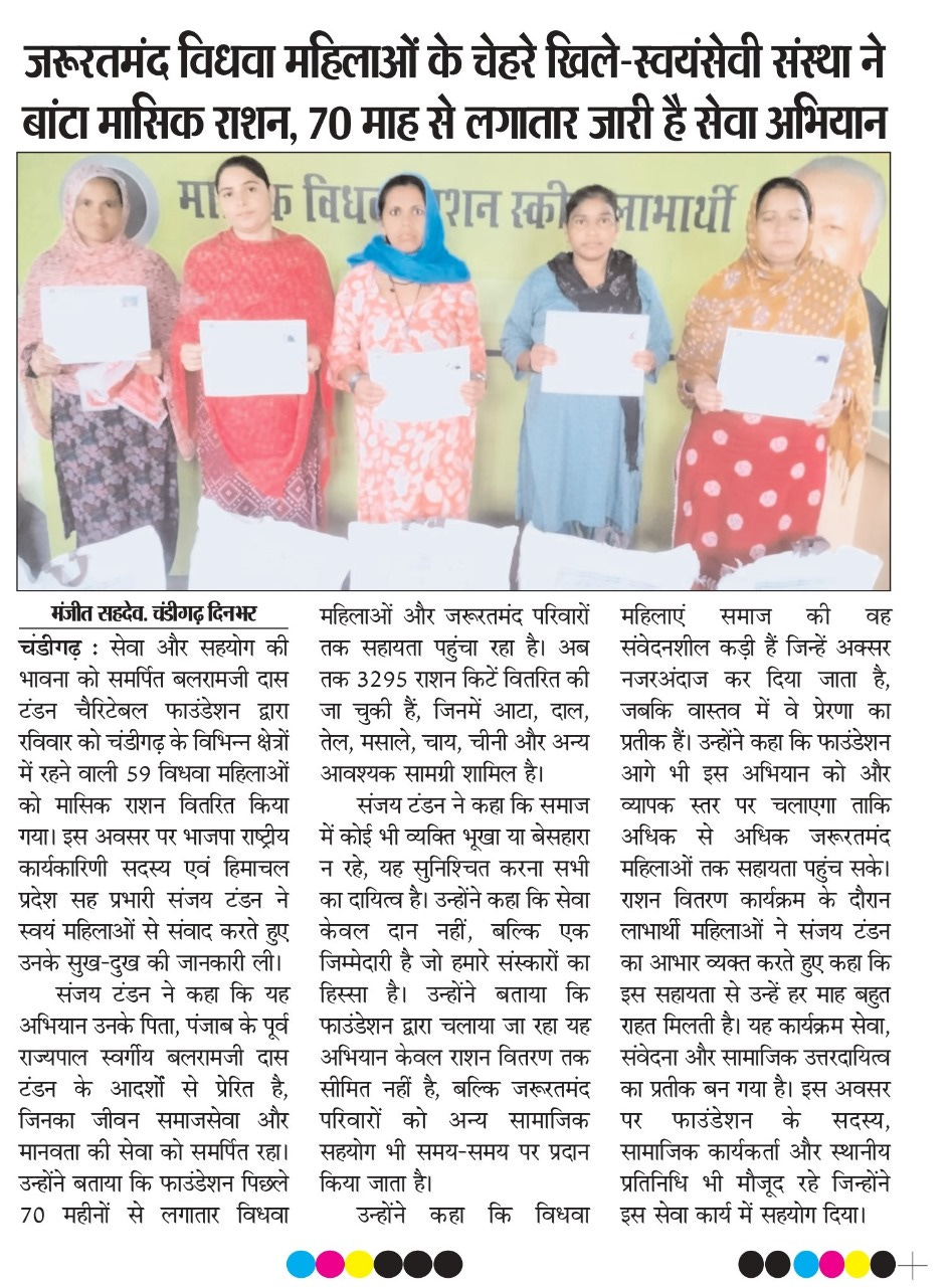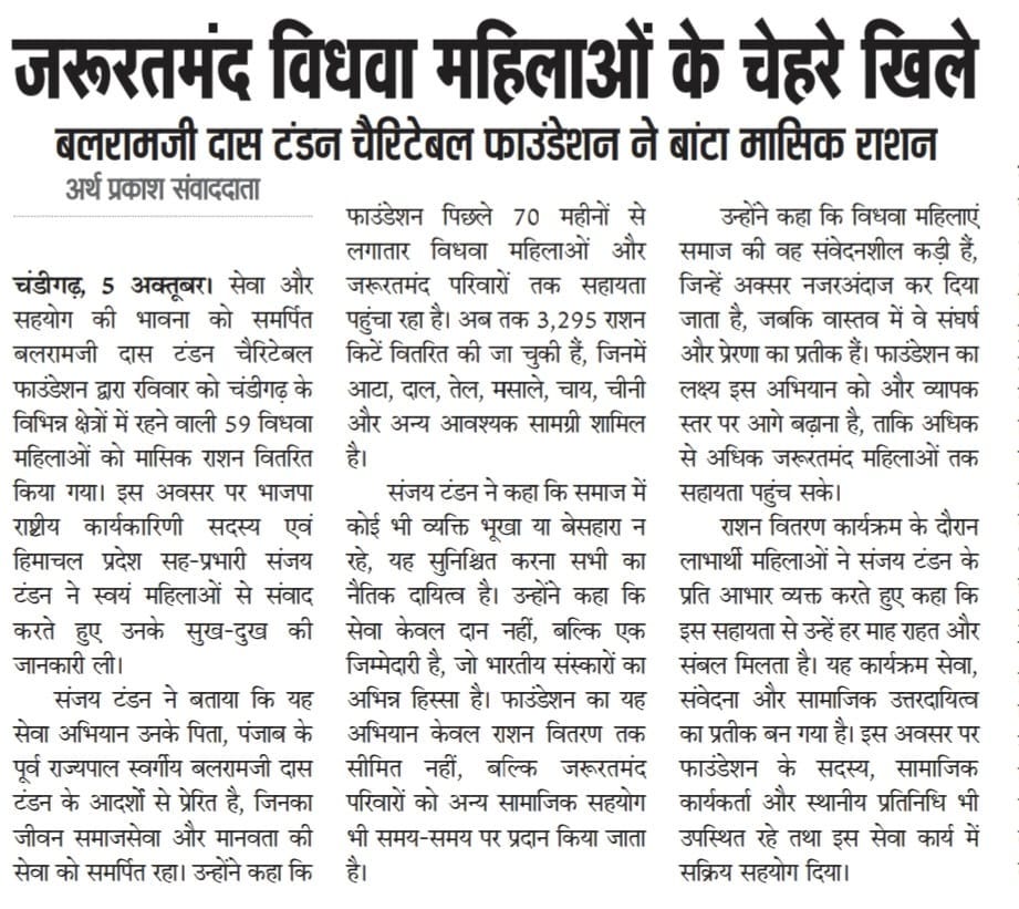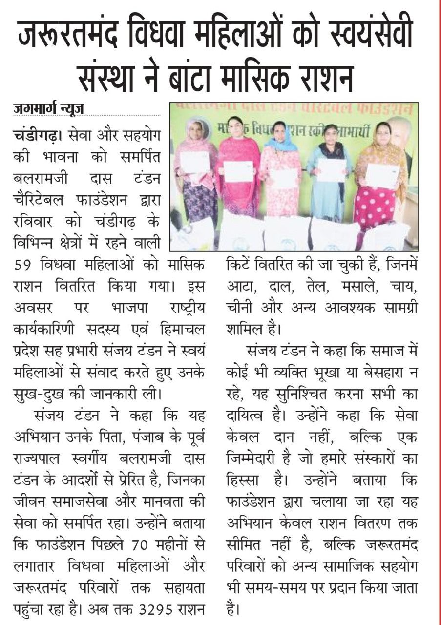 बलरामजी दास टंडन चैरिटेबल फाउंडेशन ने बांटा मासिक राशन