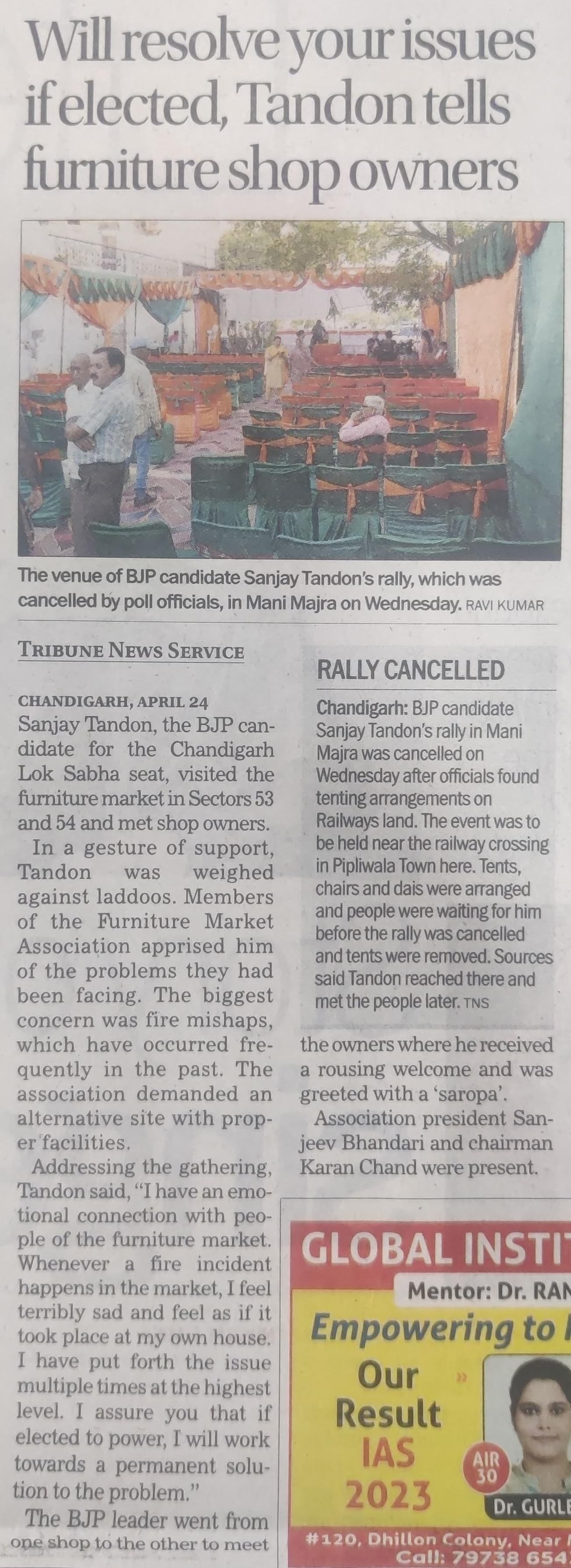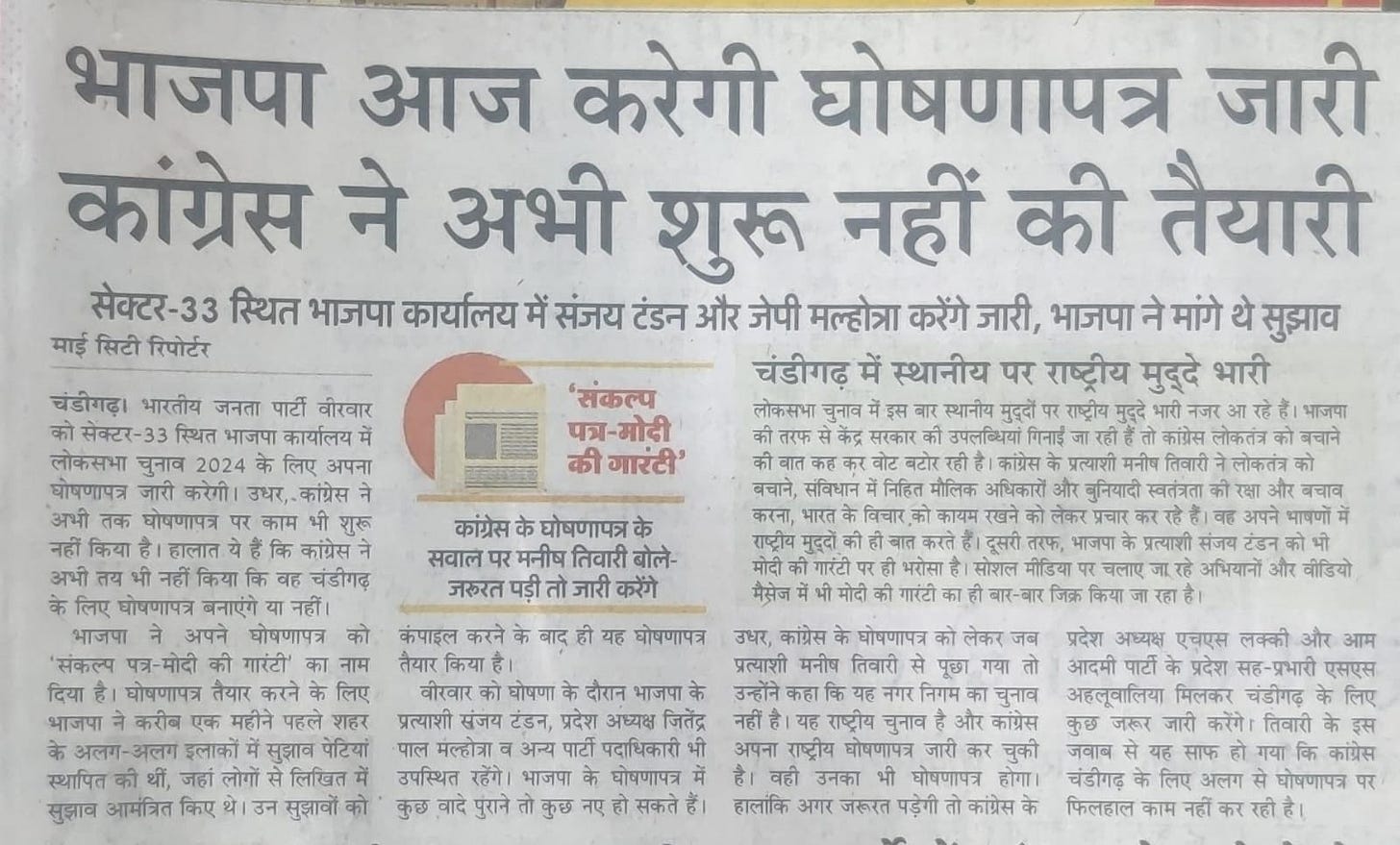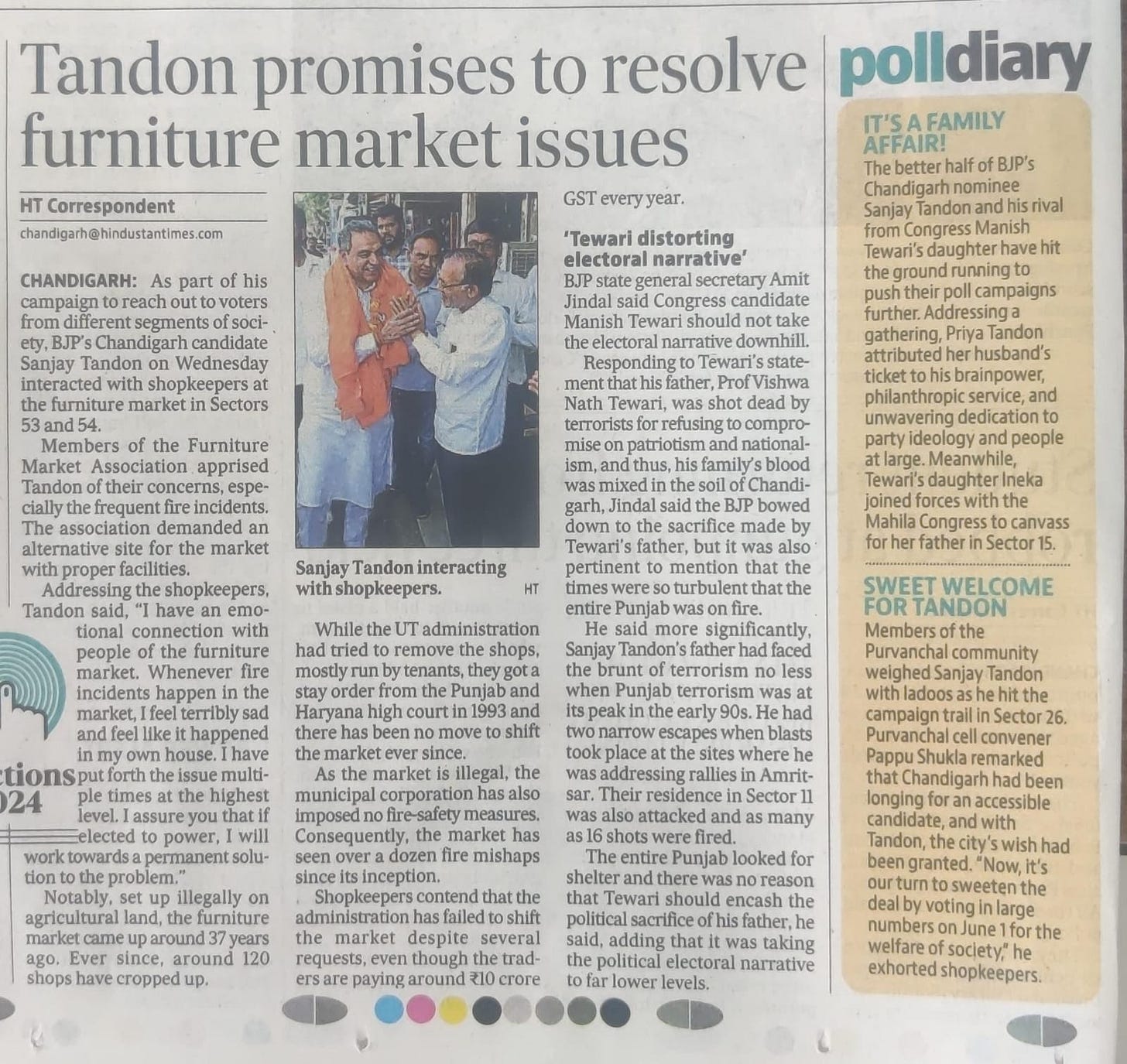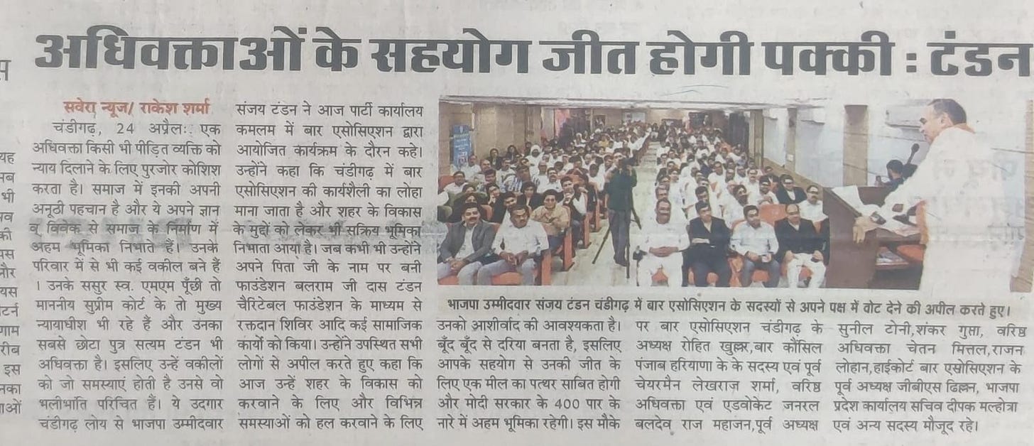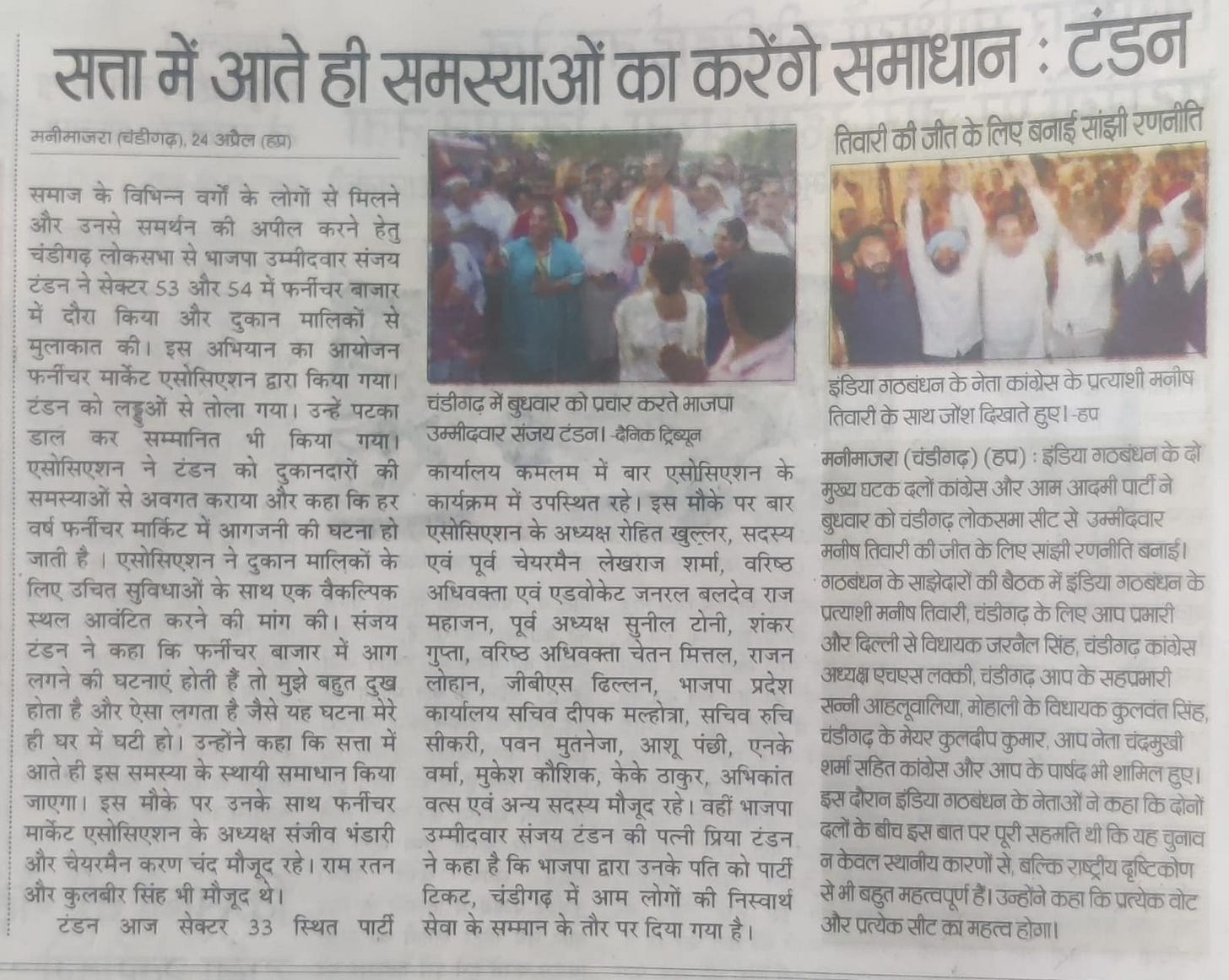 'BJP allotted ticket to Sanjay Tandon in recognition of his selfless service to people and party' +7 more storiesTribune, TOI, The Pioneer, The Indian Express, HT, Amar Ujala, Punjab KesariSanjay TandonApr 25, 20241SharePreviousNext