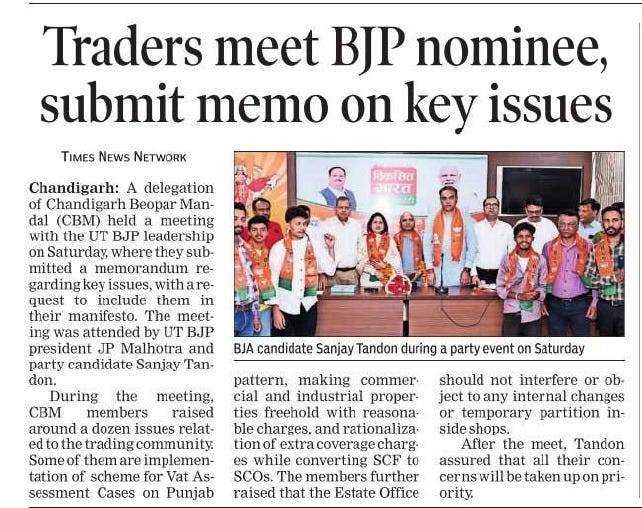 सेक्टर २२ में भाजपा प्रत्याशी संजय टंडन का फूलों की वर्षा से किया गया स्वागत