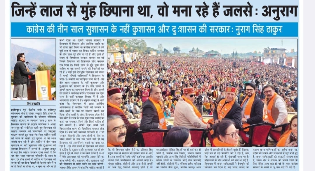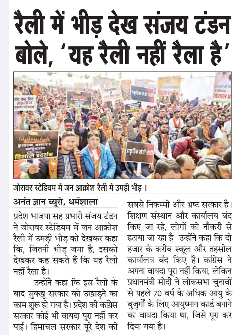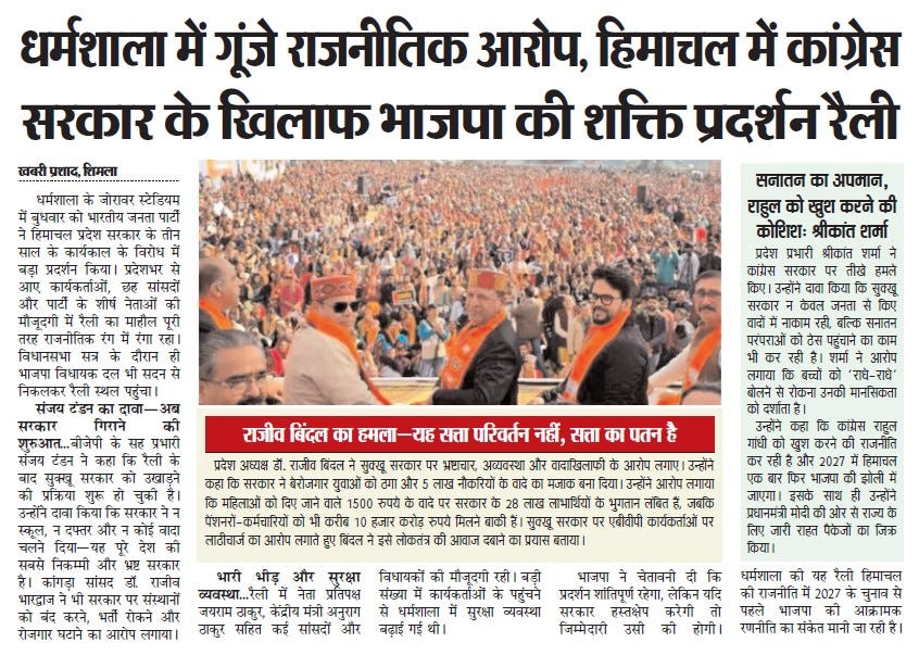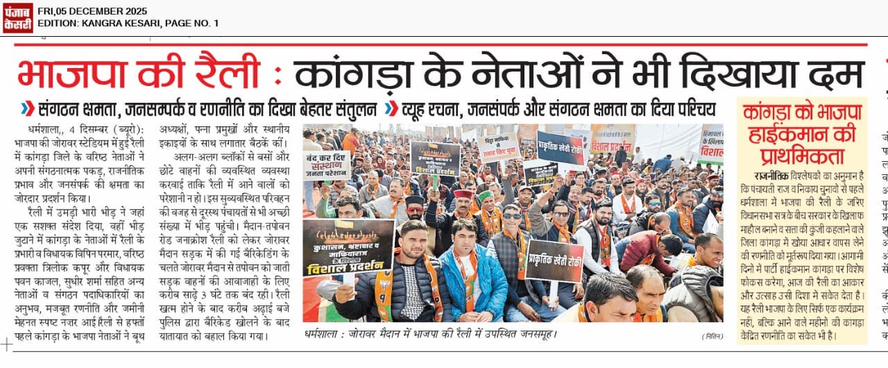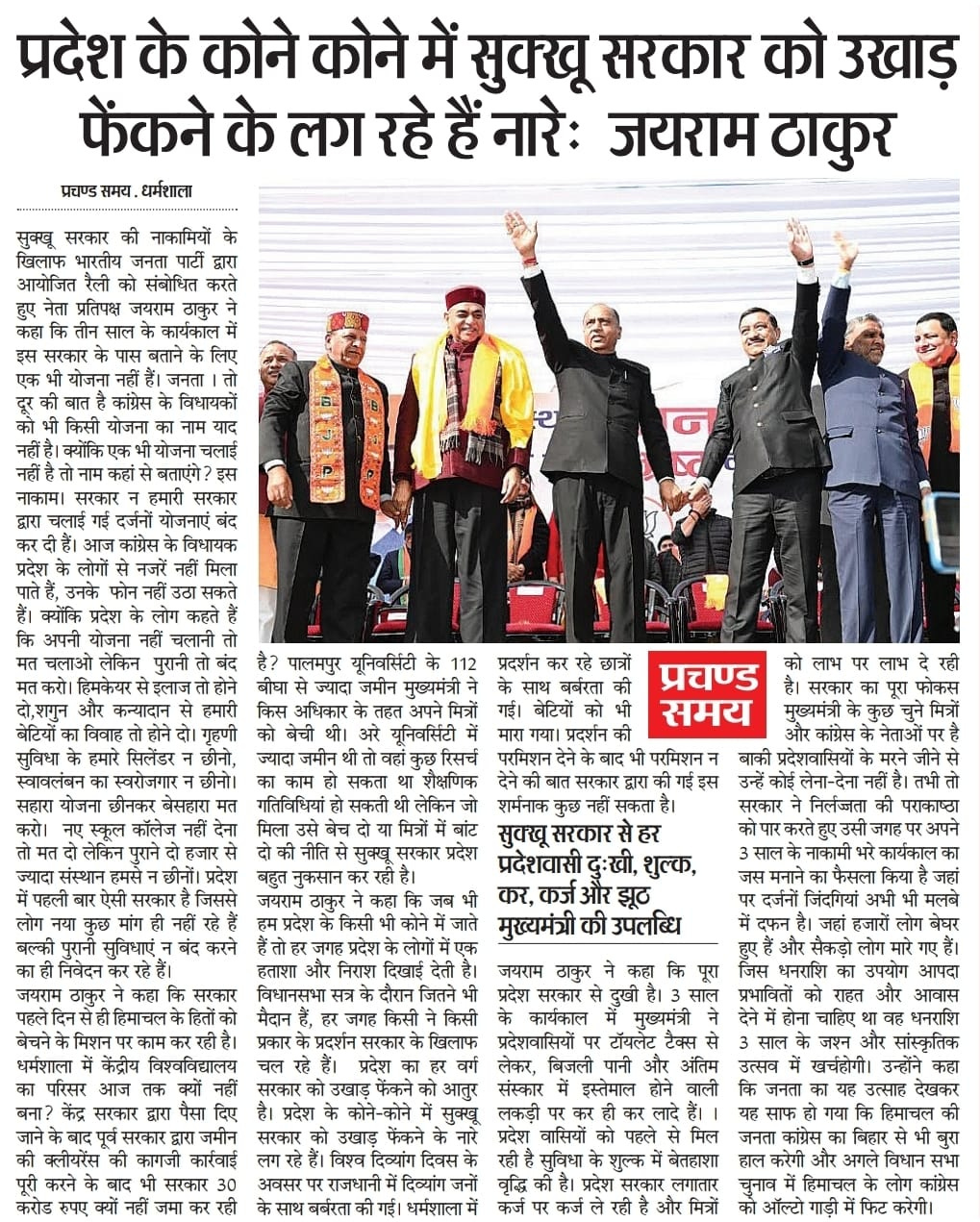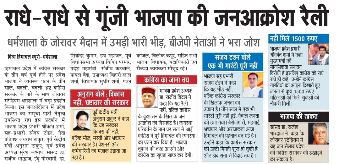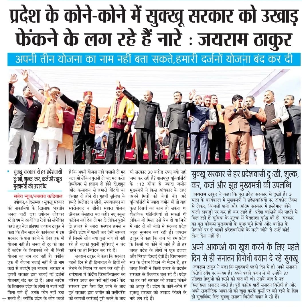 BJP protests in Dharamshala against Sukhu government failures +14 more storiesBJP holds massive rally, slams Himachal government for poor governance, rising crime ratesTeam Sanjay TandonDec 05, 2025SharePreviousNext