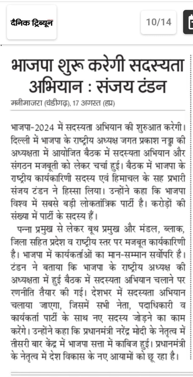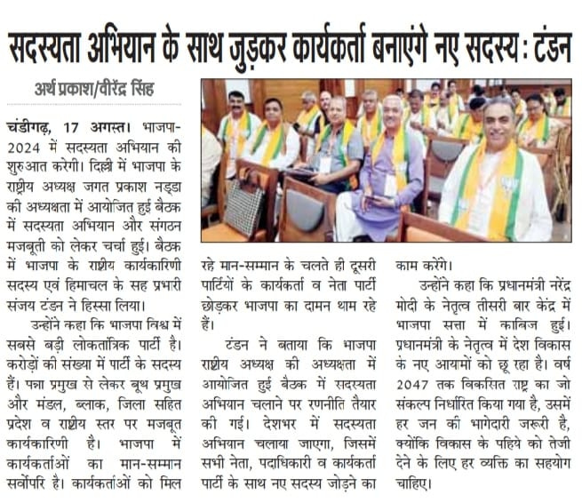 भाजपा शुरू करेगी सदस्यता अभियान : संजय टंडन