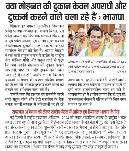 क्या मोहब्बत की दुकान केवल अपराधी और दुष्कर्म करने वाले चला रहे हैं : भाजपा