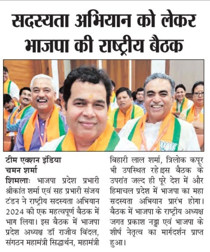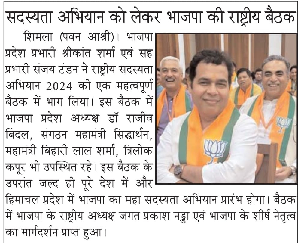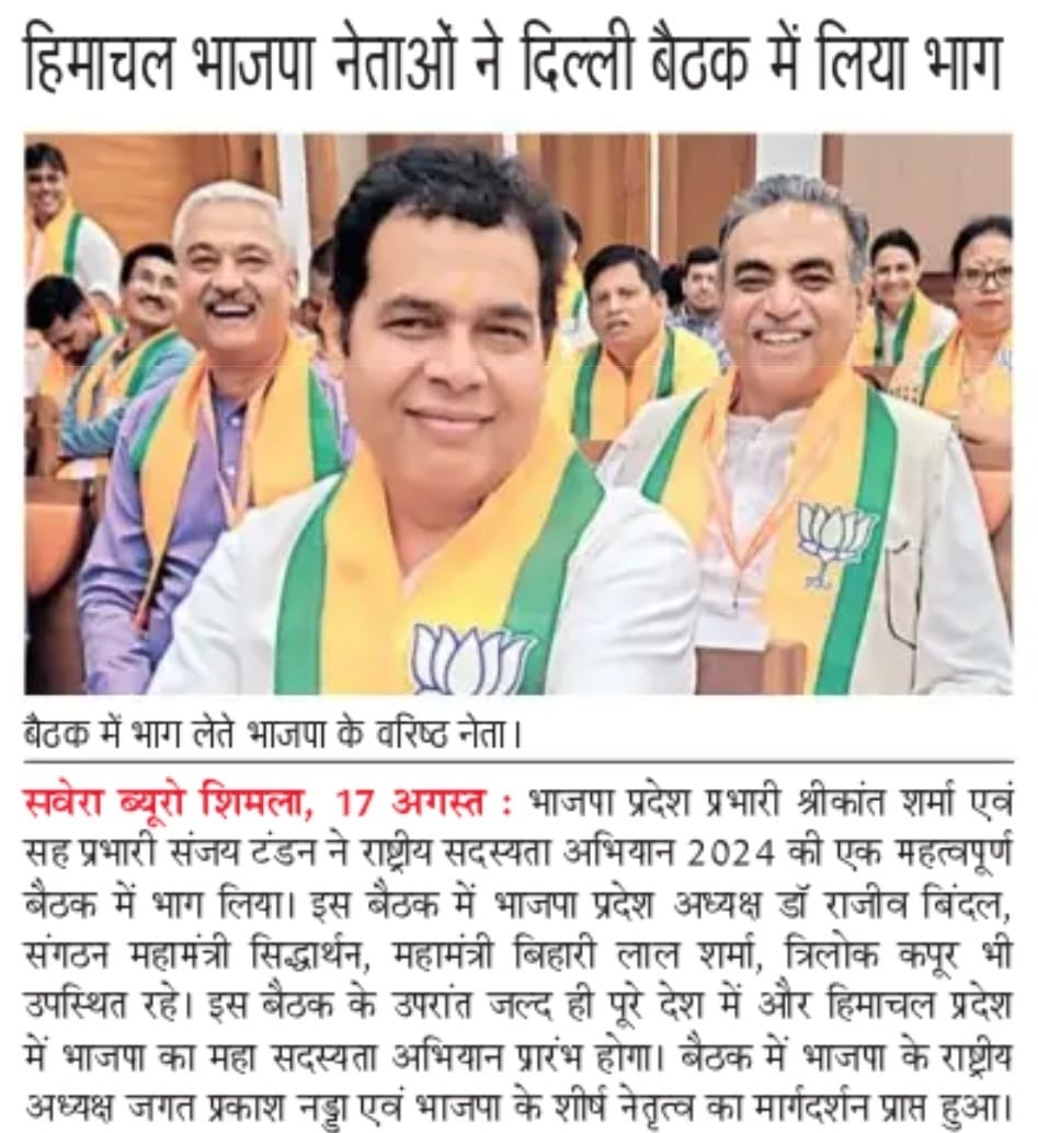 हिमाचल भाजपा नेताओं ने दिल्ली बैठक में लिया भाग