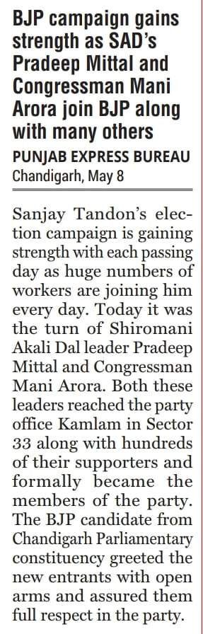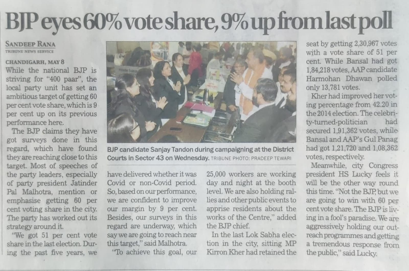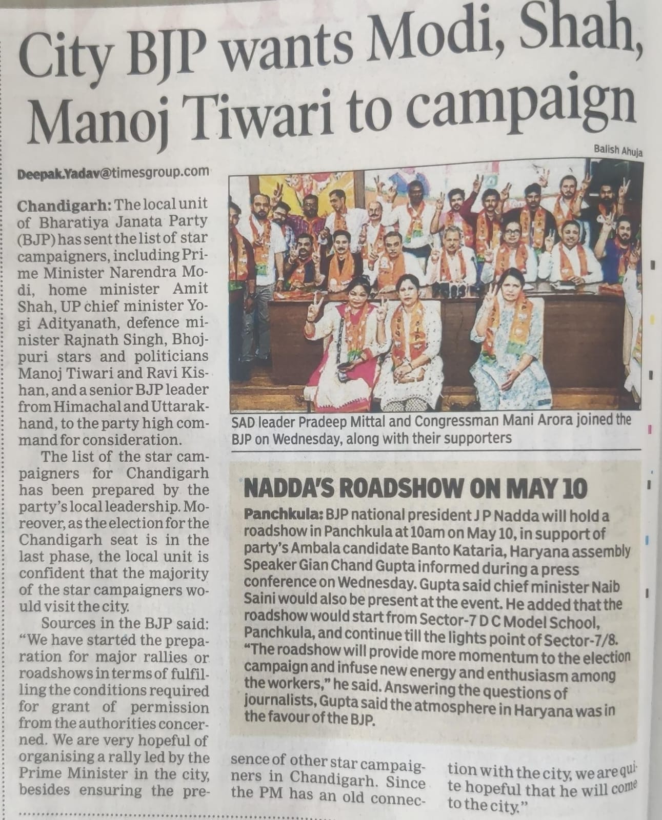 Chandigarh BJP candidate Sanjay Tandon’s grand plans for nomination day: Havan , rally and massive roadshow