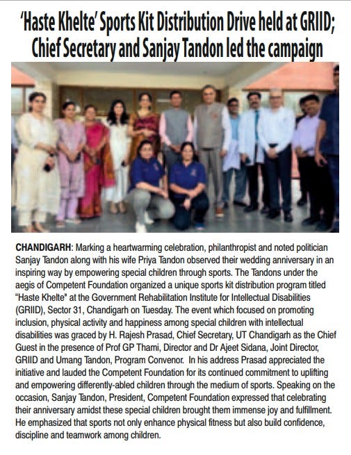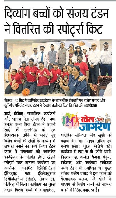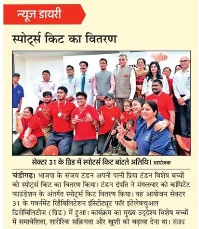 दिव्यांग बच्चों को संजय टंडन ने वितरित की स्पोर्ट्स किट