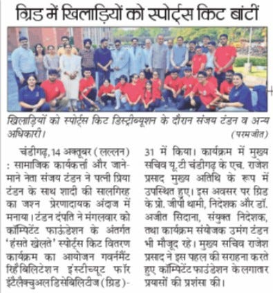 ग्रिड में हंसते खेलते स्पोर्ट्स किट डिस्ट्रीब्यूशन ड्राइव का आयोजन