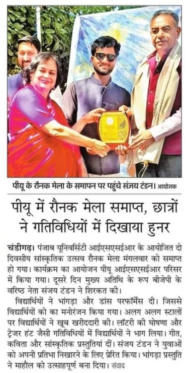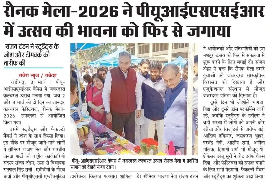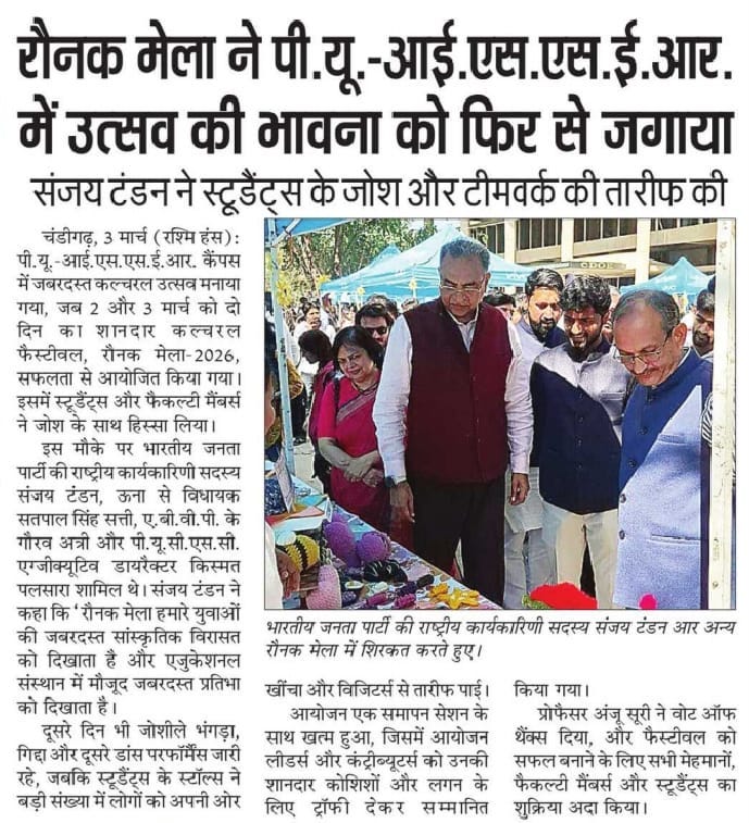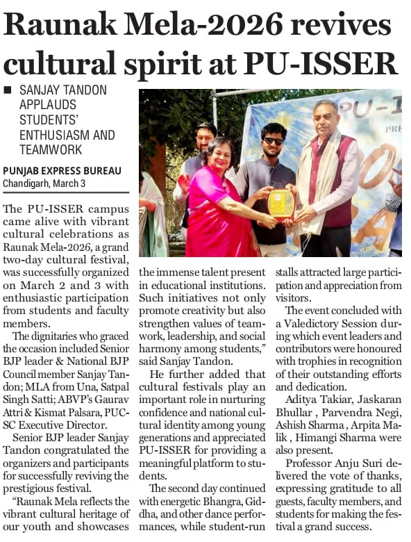 Raunak Mela-2026 revives cultural spirit at PU-ISSER + 10 more storiesTeam Sanjay TandonMar 04, 2026SharePrevious