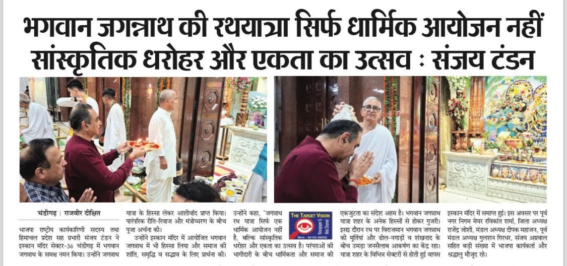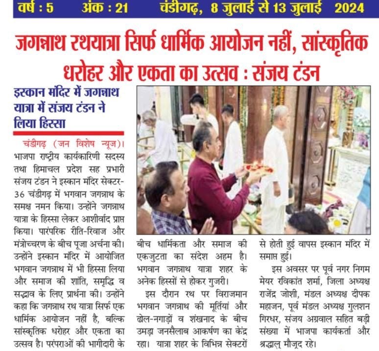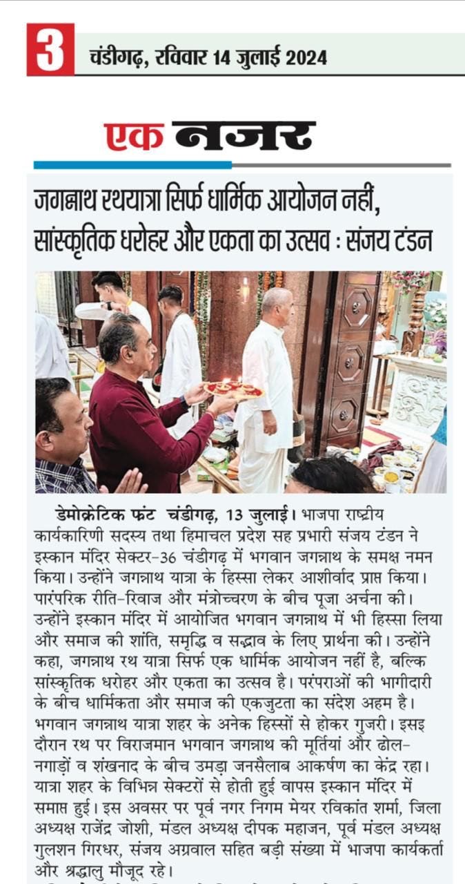 भगवान जगन्नाथ की रथयात्रा सिर्फ धार्मिक आयोजन नहीं सांस्कृतिक धरोहर और एकता का उत्सव : संजय टंडन