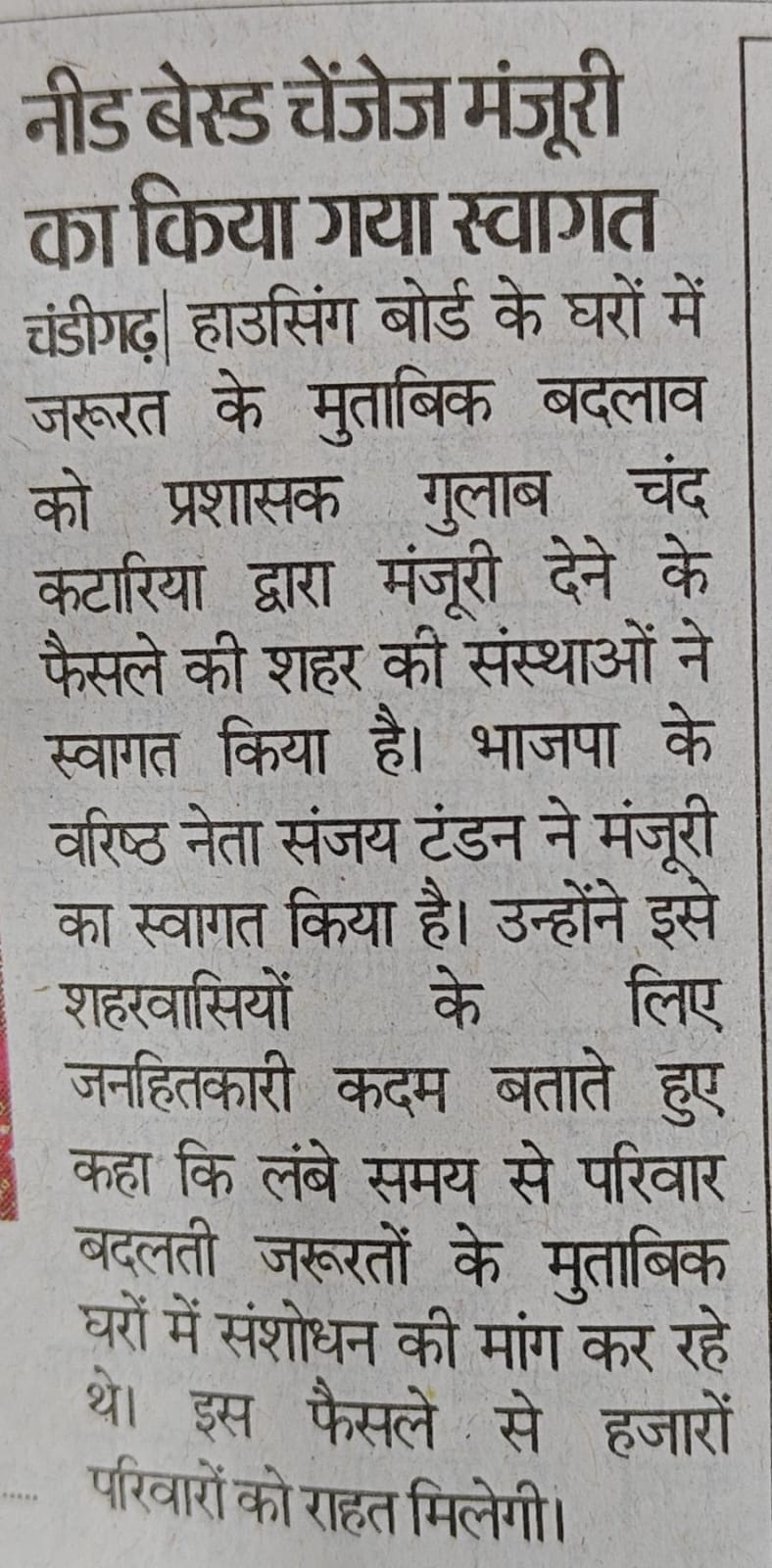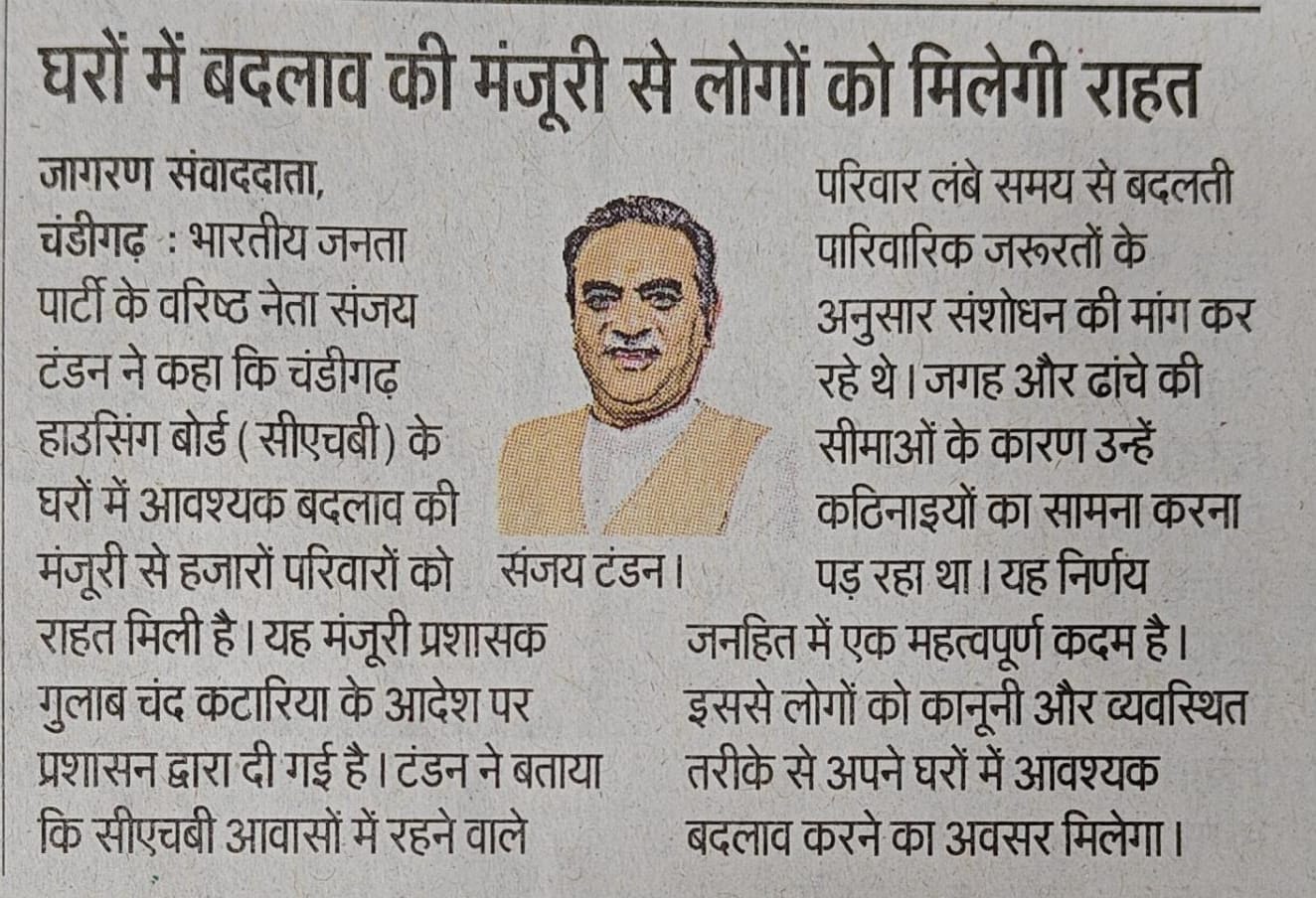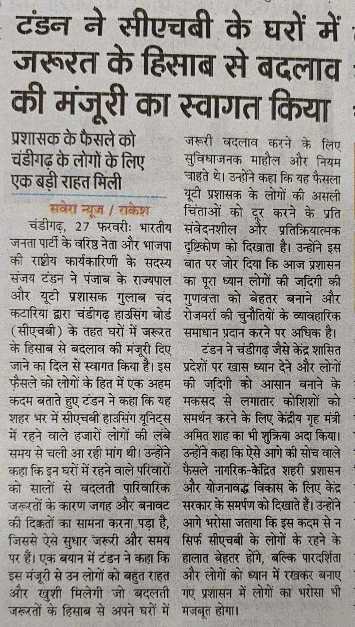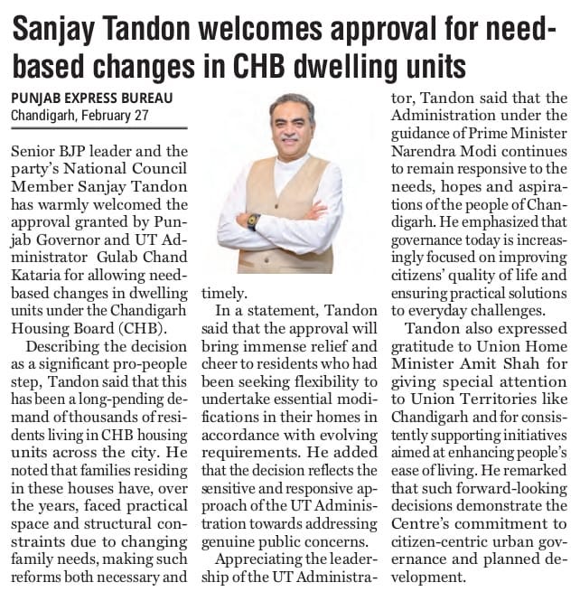 Sanjay Tandon welcomes approval for need-based changes in CHB dwelling units +6 more storiesTeam Sanjay TandonFeb 28, 2026SharePrevious