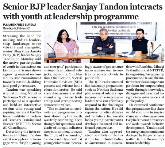 Senior BJP leader Sanjay Tandon interacts with youth at leadership programme+3 more storiesTeam Sanjay TandonFeb 03, 20261SharePreviousNext