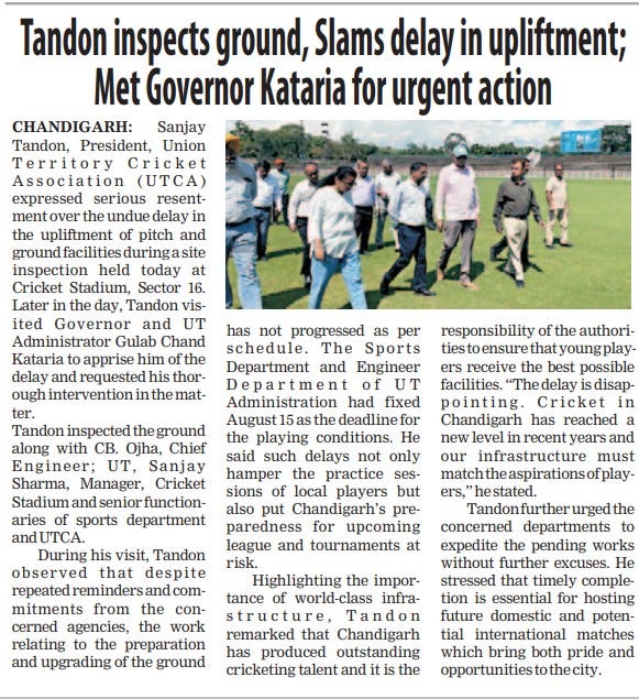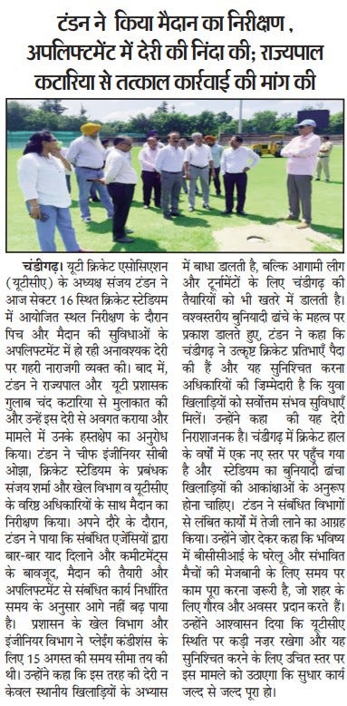 यूटीसीए के अध्यक्ष टंडन ने 16 क्रिकेट स्टेडियम में किया निरीक्षण