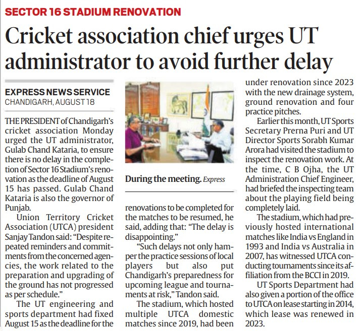 टंडन ने किया सेक्टर-16 क्रिकेट स्टेडियम का निरीक्षण, अपग्रेडेशन में देरी की निंदा की