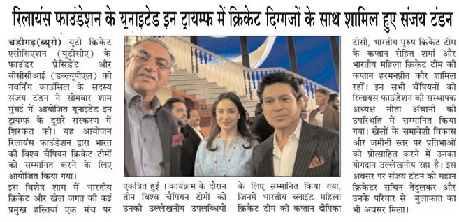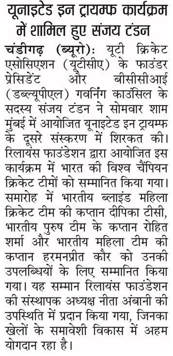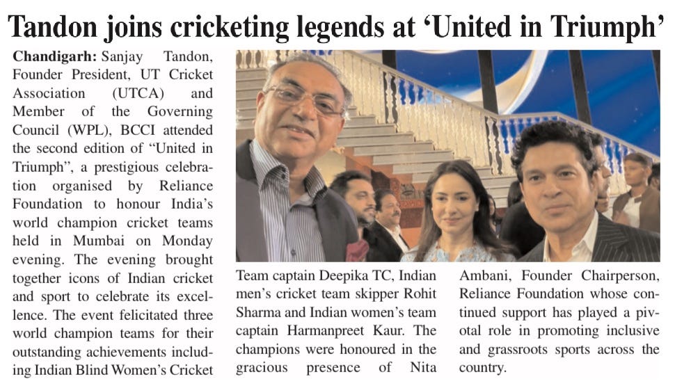 Tandon joins cricketing legends at 'United In Triumph' +5 more storiesTeam Sanjay TandonJan 07, 2026SharePrevious