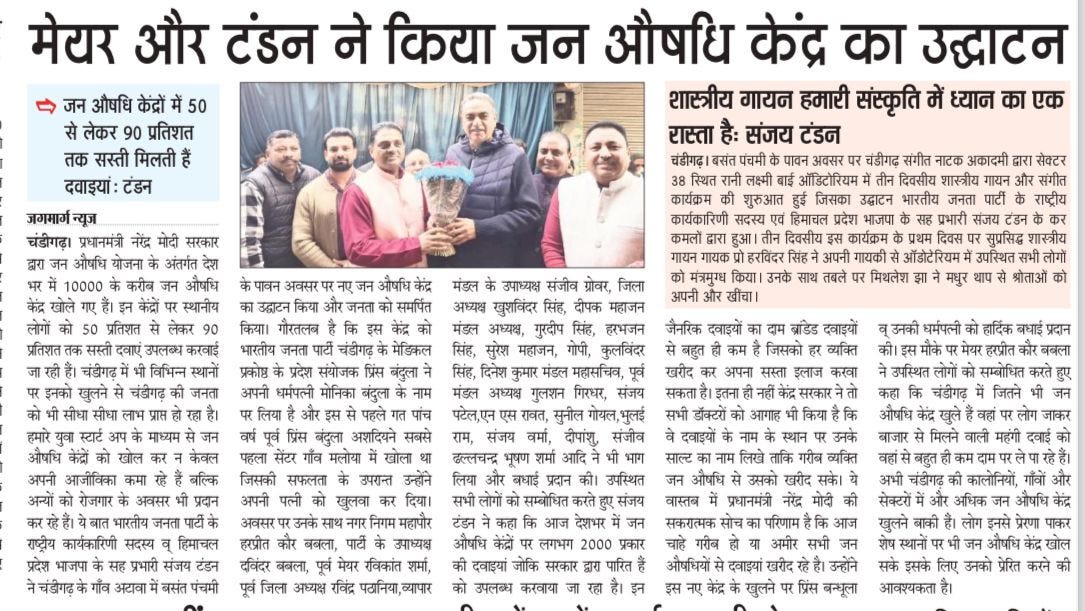 टंडन और महापौर हरप्रीत कौर ने किया जन औषधि केंद्र का उद्घाटन