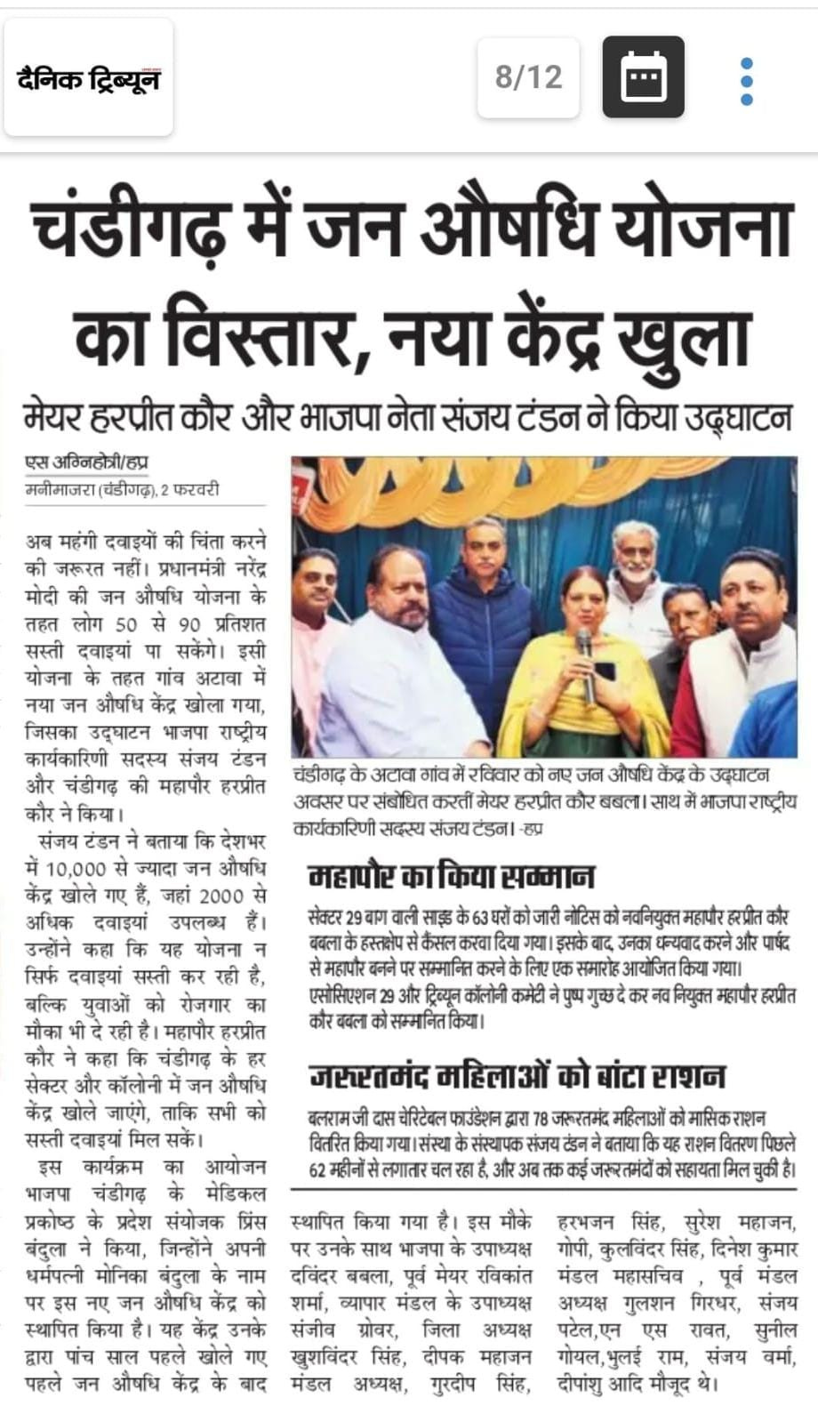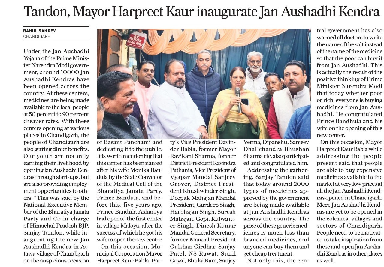 Tandon, Mayor Harpreet Kaur inaugurate Jan Aushadhi Kendra +7 more stories