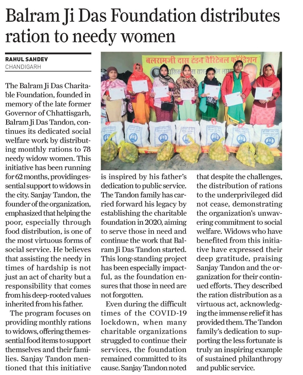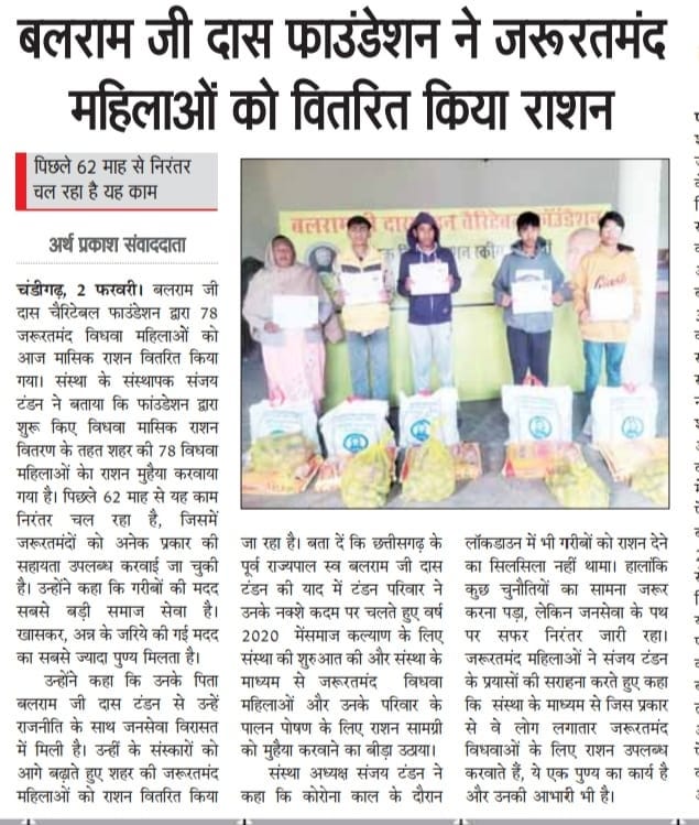 बलराम जी दास फाउंडेशन ने जरूरतमंद महिलाओं को वितरित किया राशन